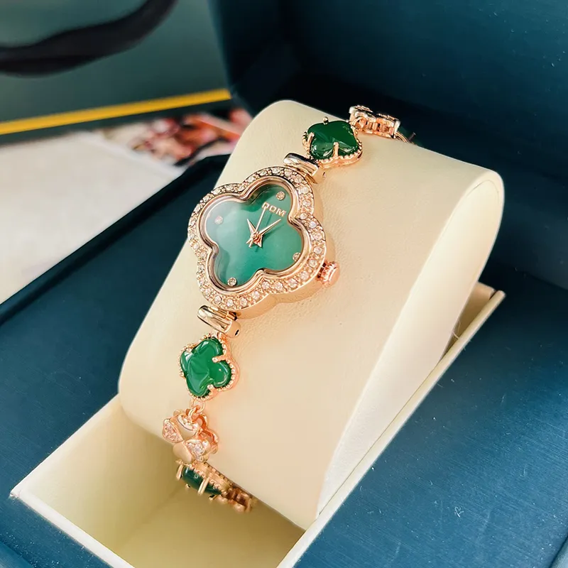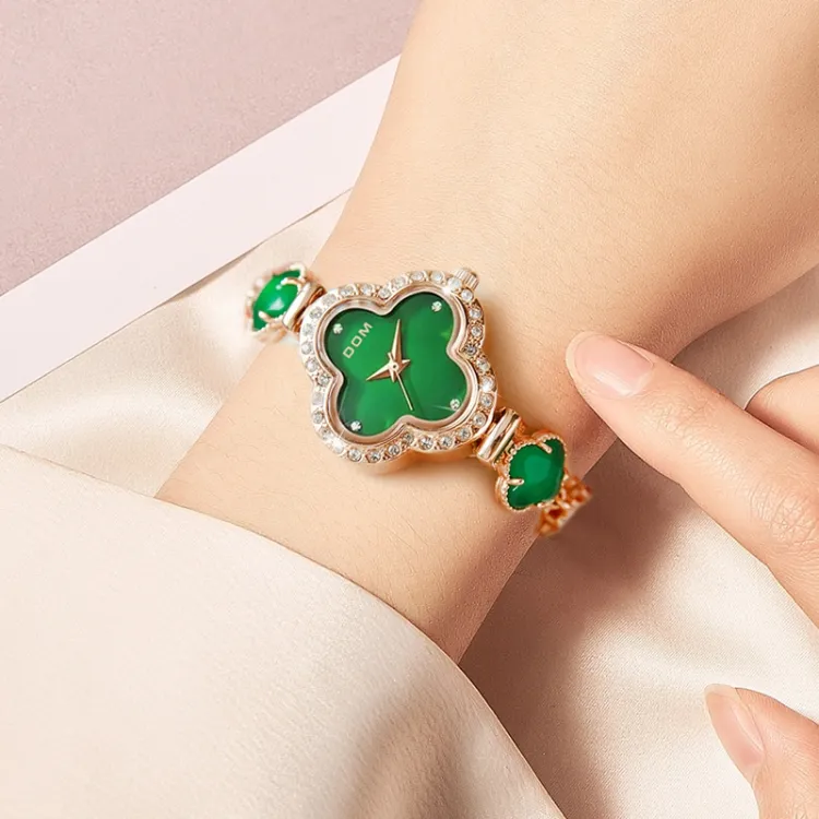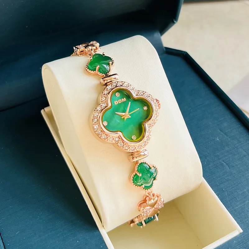 DOM Кварцевый механизм Часы Женские Зеленый циферблат