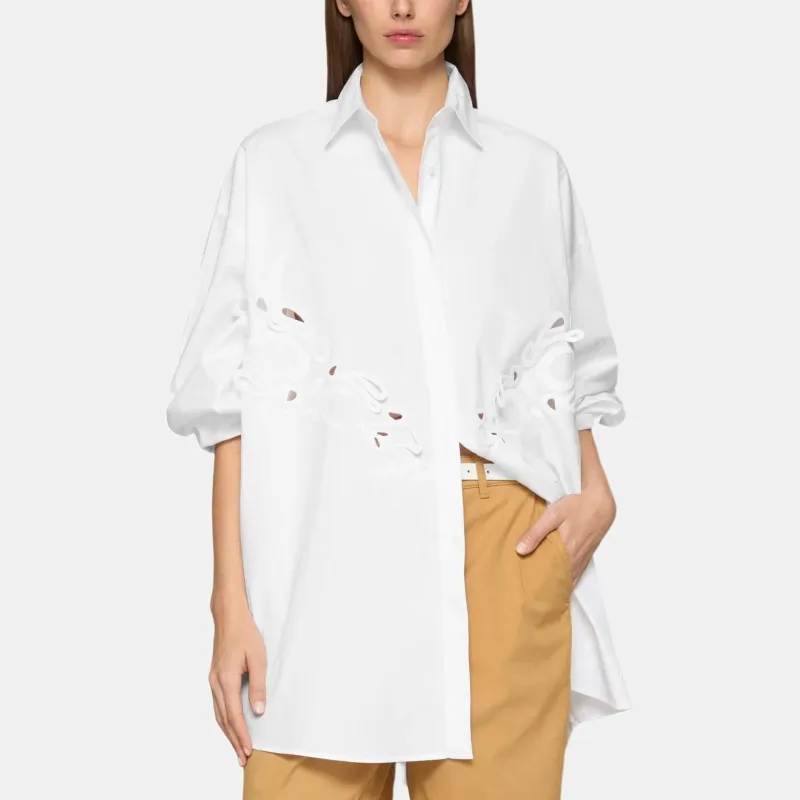 Dondup SS25 Длинное Платье с Длинными Рукавами Женское Белое