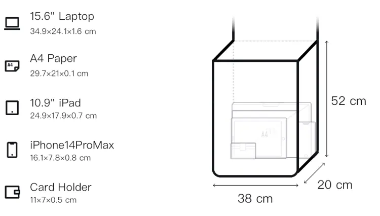 Д38*Ш20*В52см