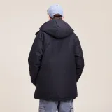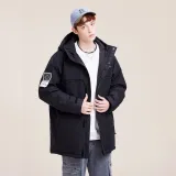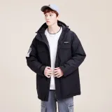 "Shell: 100% полиэстер (за исключением пленки покрытия) Подкладка/ткань подкладки: 100% полиэстер Шляпа/наполнитель воротника: 100% полиэстер Тело/наполнитель рукавов: белый утиный пух Содержание пуха: 80%"