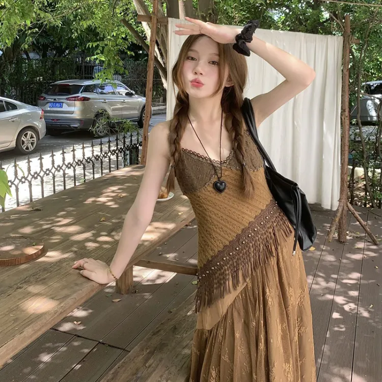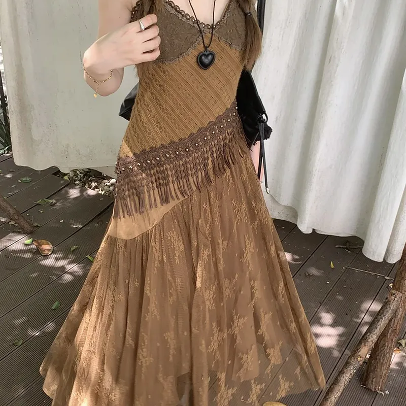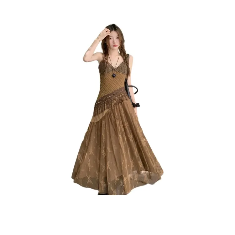 DOSOHEB Винтажный коричневый Нижняя юбка Платье Женские Слиплатья