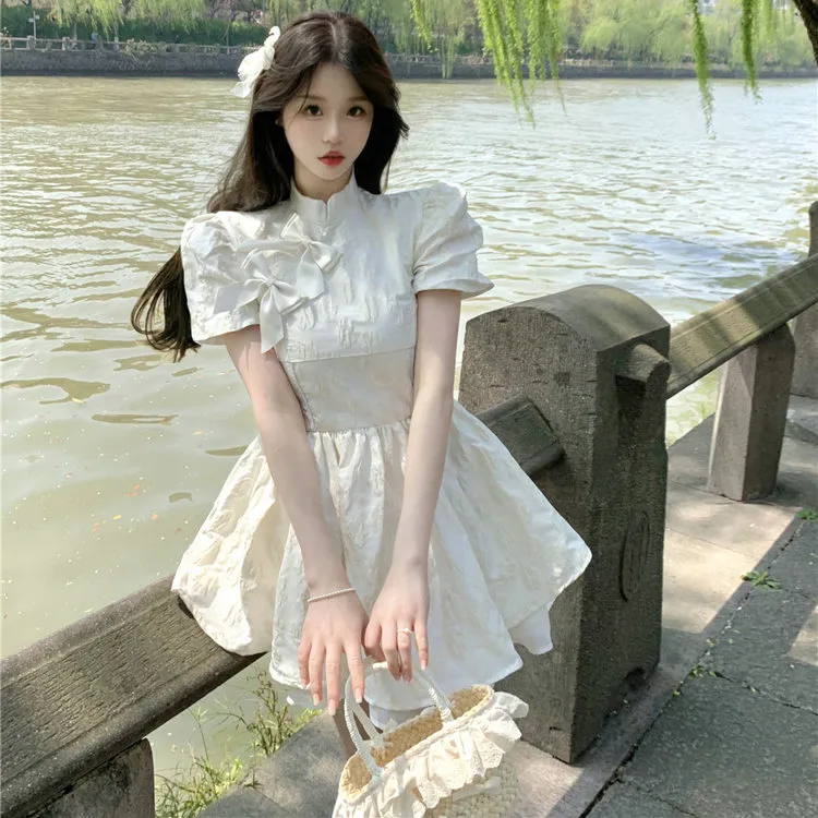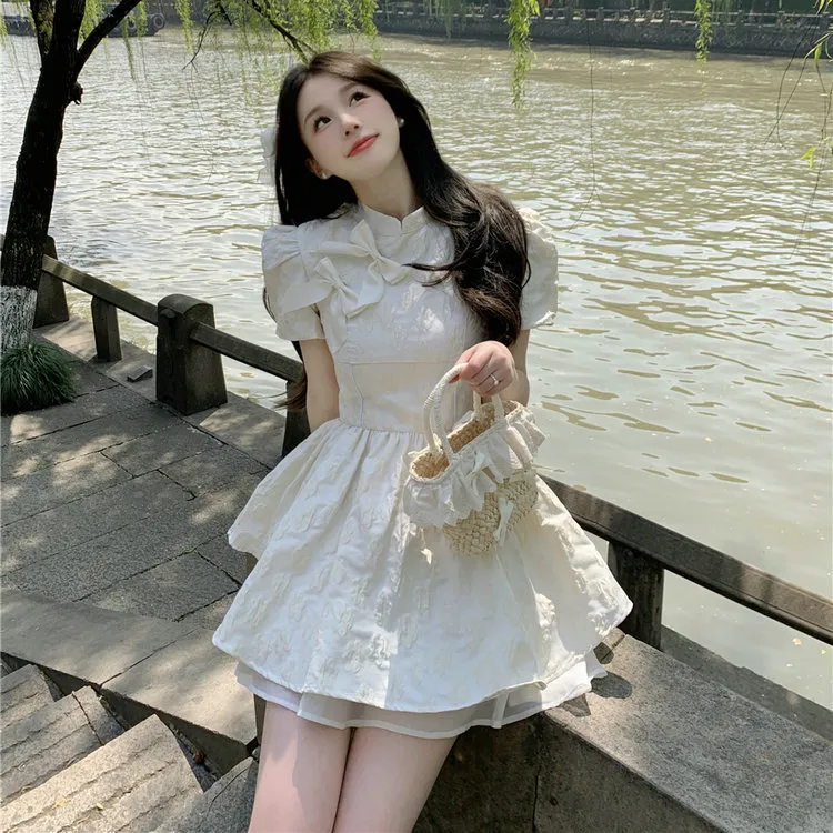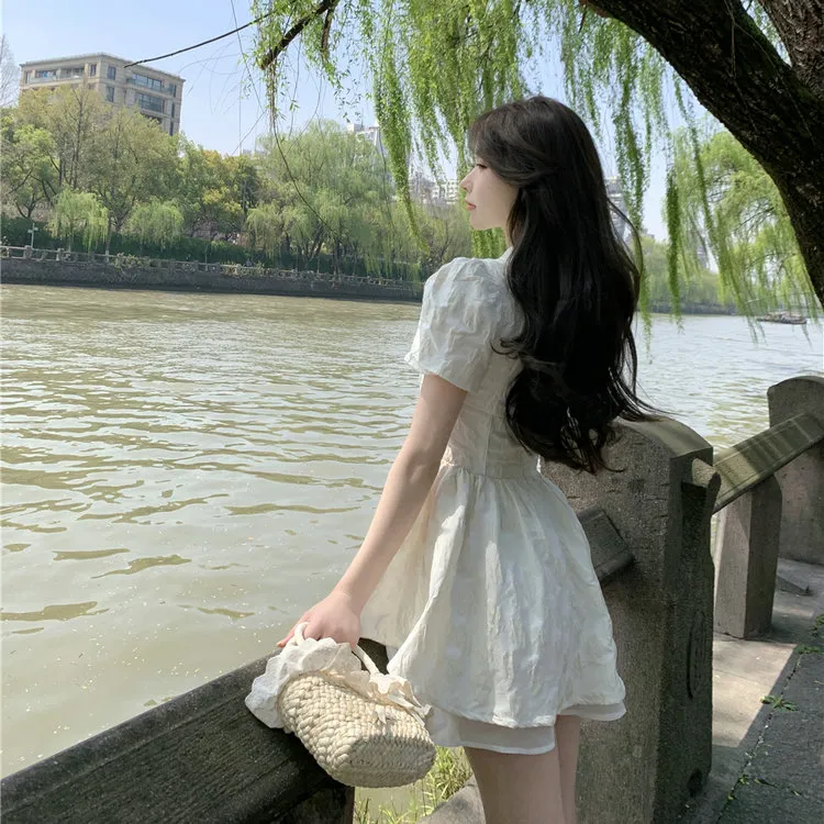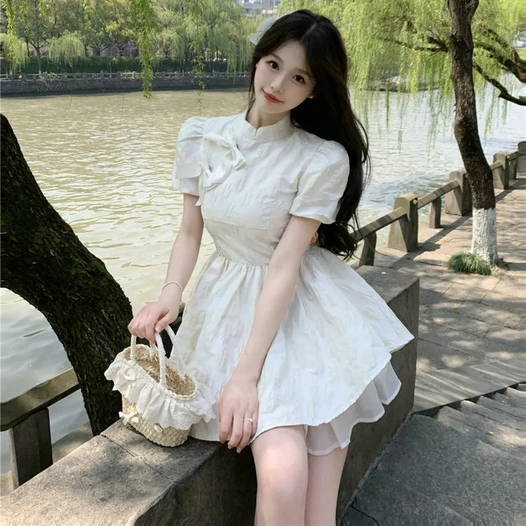 DOSOHEB Короткий рукав Платье Женское Белое