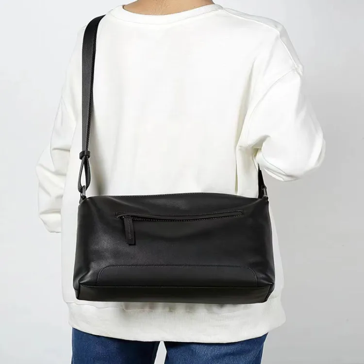 DOSRFINI Сумка через плечо из коровьей кожи среднего размера мужская черная