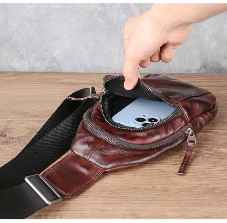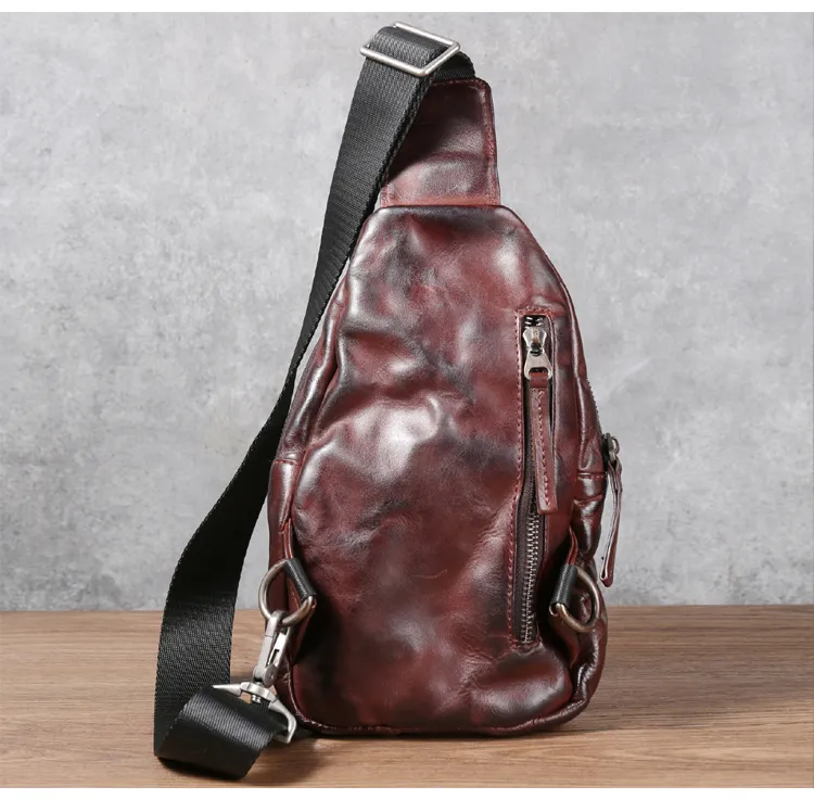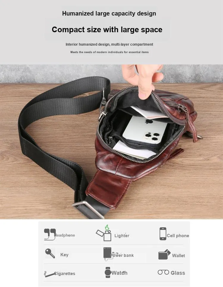 DOSRFINI Первый слой Растительное дубление Коровья кожа Sling Сумка Обычный Мужской Черный Темно-Кофейный