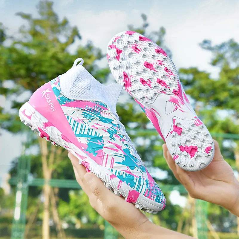 DOUBLE STAR 88 Slip-resistant Abrasion-resistant Lightweight Football Cleats Unisex Cherry Blossom Pink Двойная звезда 88 противоскользящие устойчивые к истиранию легкие футбольные бутсы унисекс цвет вишневый цветок розовый