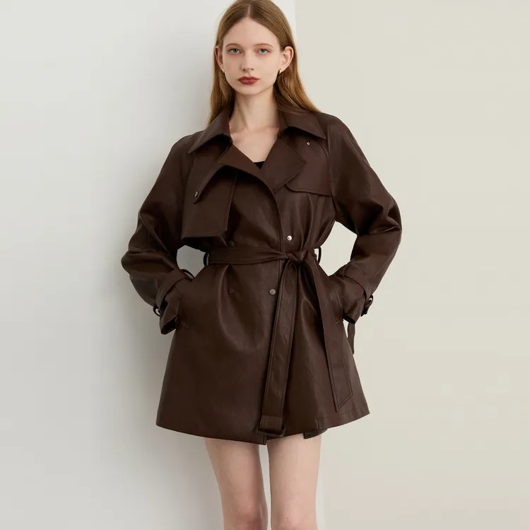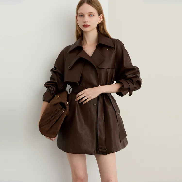 DPLAY Шоколад Коричневый Женские Кожаные куртки