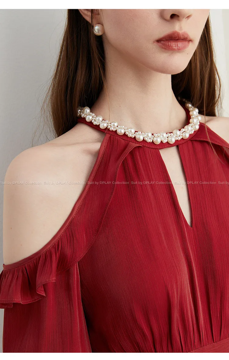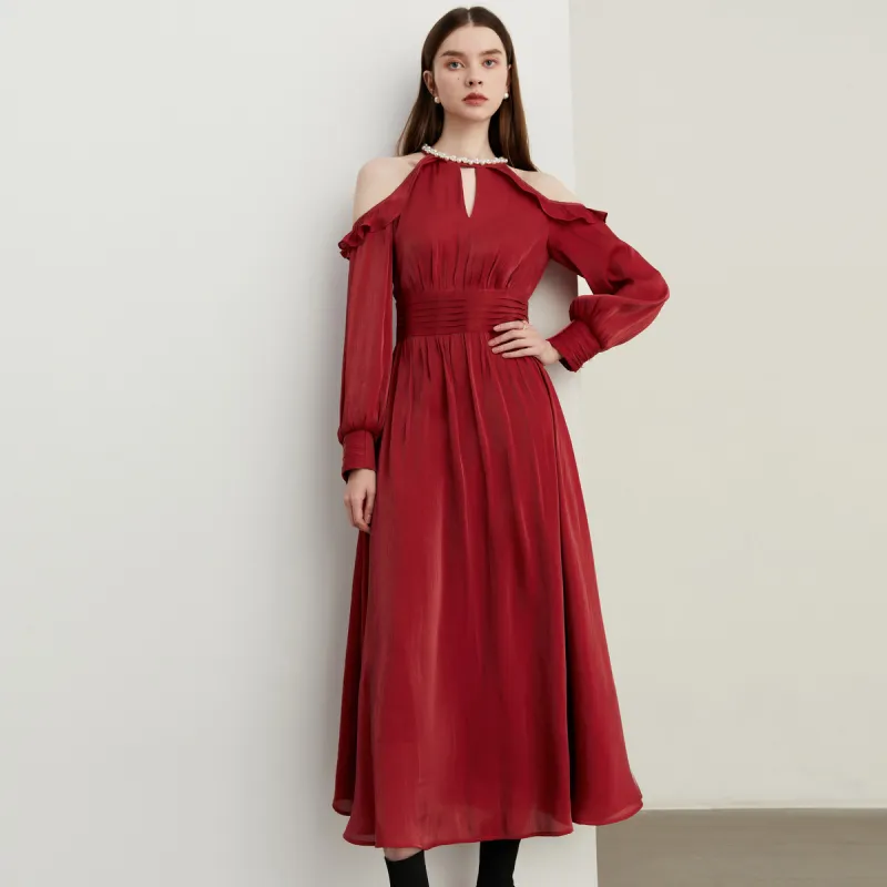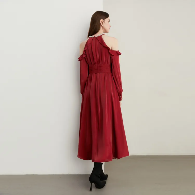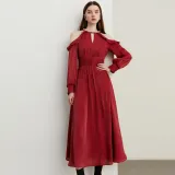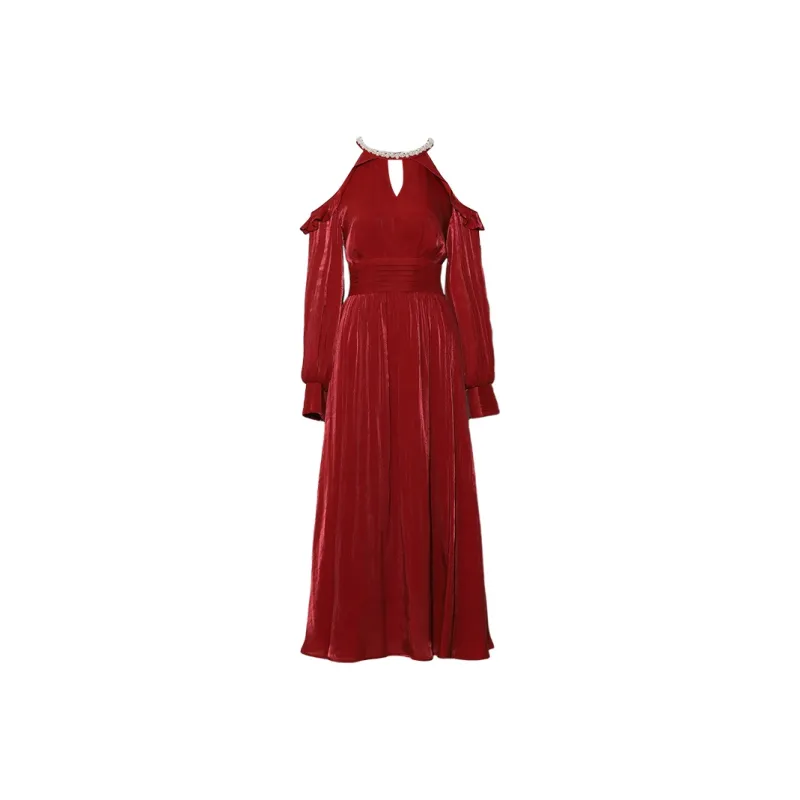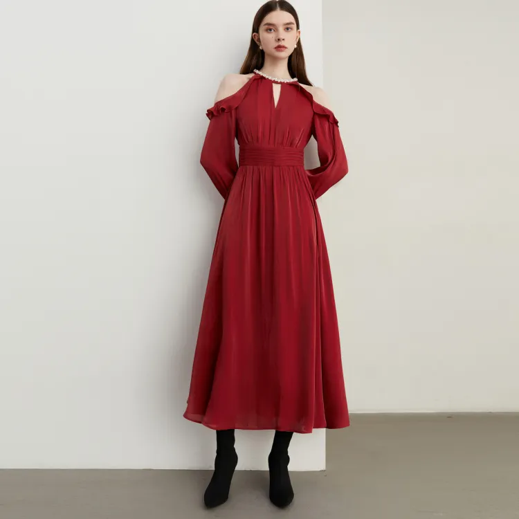 DPLAY Длинное платье с длинными рукавами женское Анкора красный