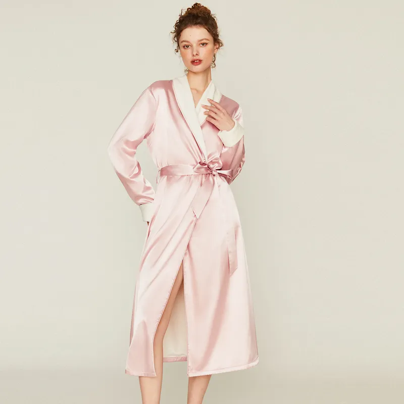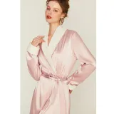 DPLAY SWEET Прозрачно-розовый флисовый женский банный халат с подкладкой