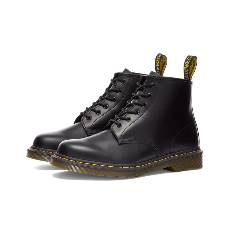 Эти ботинки DR.MARTENS модели 101 YS представляют собой классическую 6-дырочную модель с коротким голенищем. Они изготовлены из высококачественной кожи, обладают отличной текстурой и долговечностью. Черный дизайн выглядит лаконично и универсально, подходит для различных случаев.