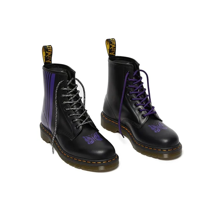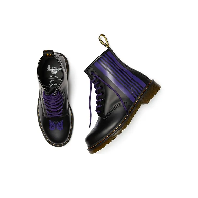Needles x Dr.Martens 1460 Короткий Мартин Ботинок Унисекс Черный Фиолетовый
