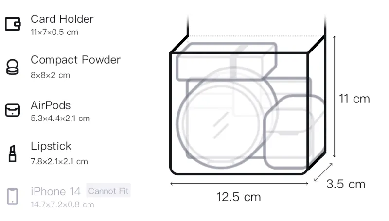 Длина 12,5 см * Ширина 3,5 см * Высота 11 см