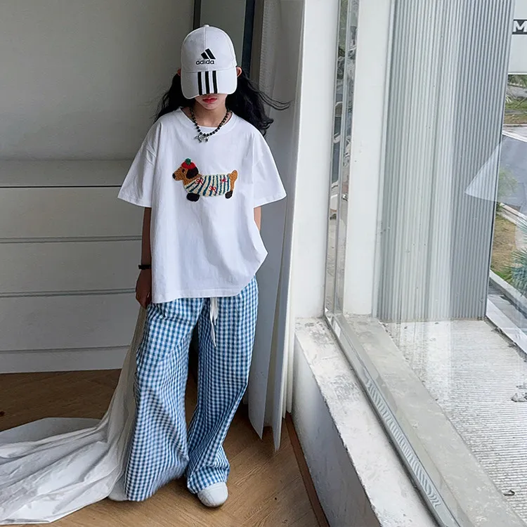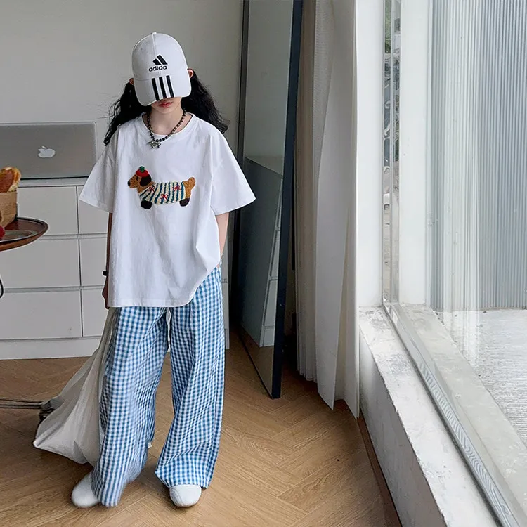 Топ в синюю клетку, штаны