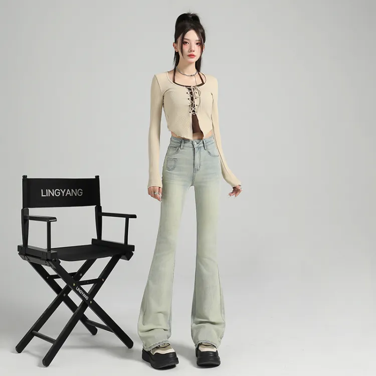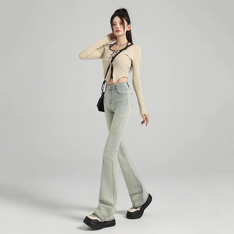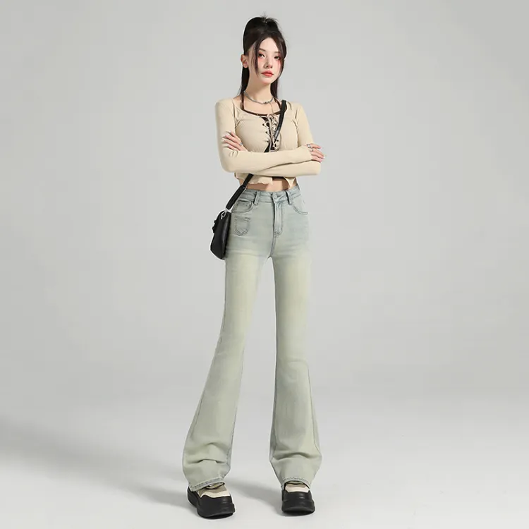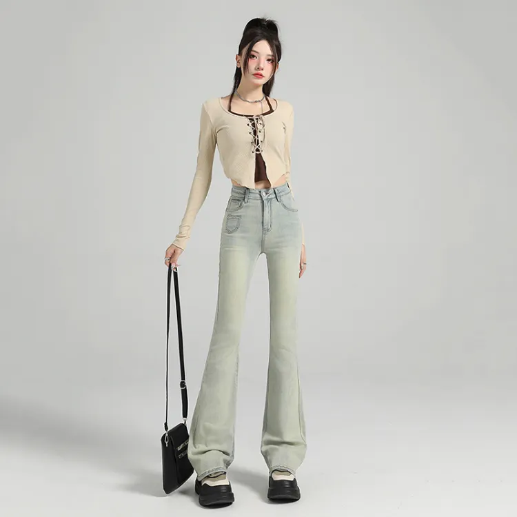 Dreamcore Джинсы Женские Потертые Желто-грязные