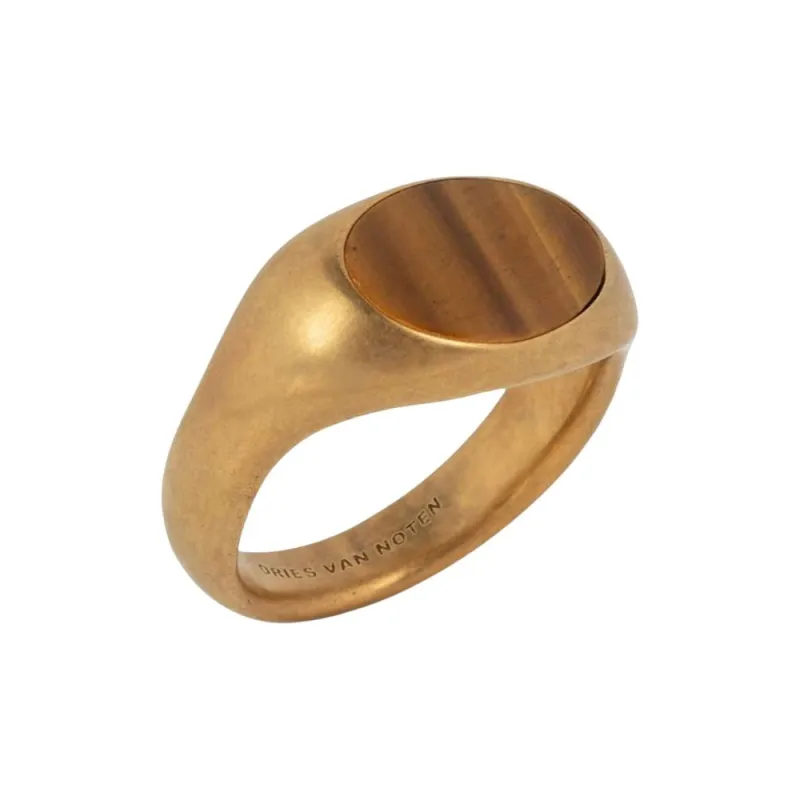 DRIES VAN NOTEN Экологичный Латунь Камень Тигровый глаз Кольца Мужские Золотые