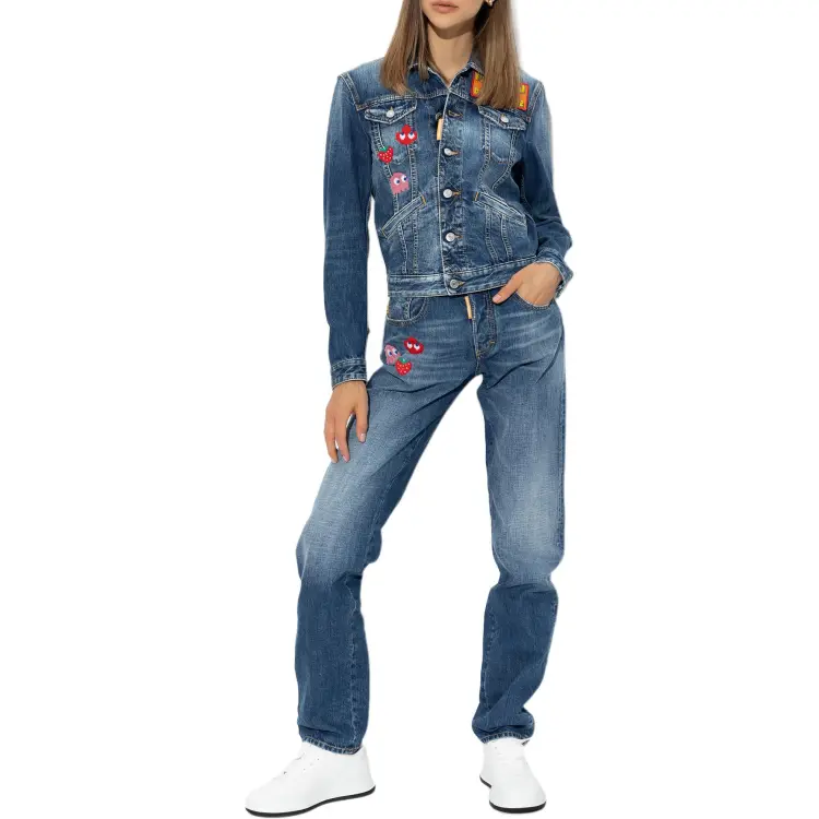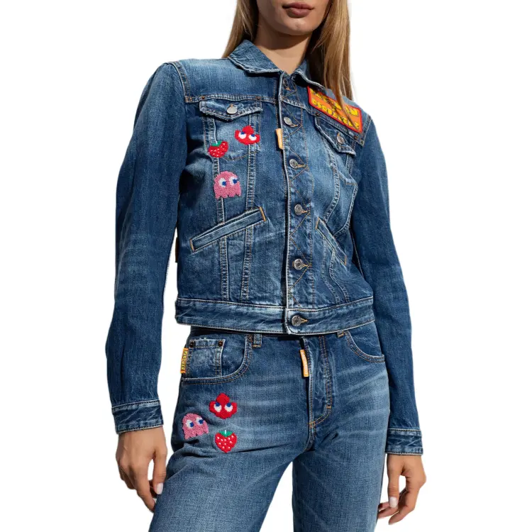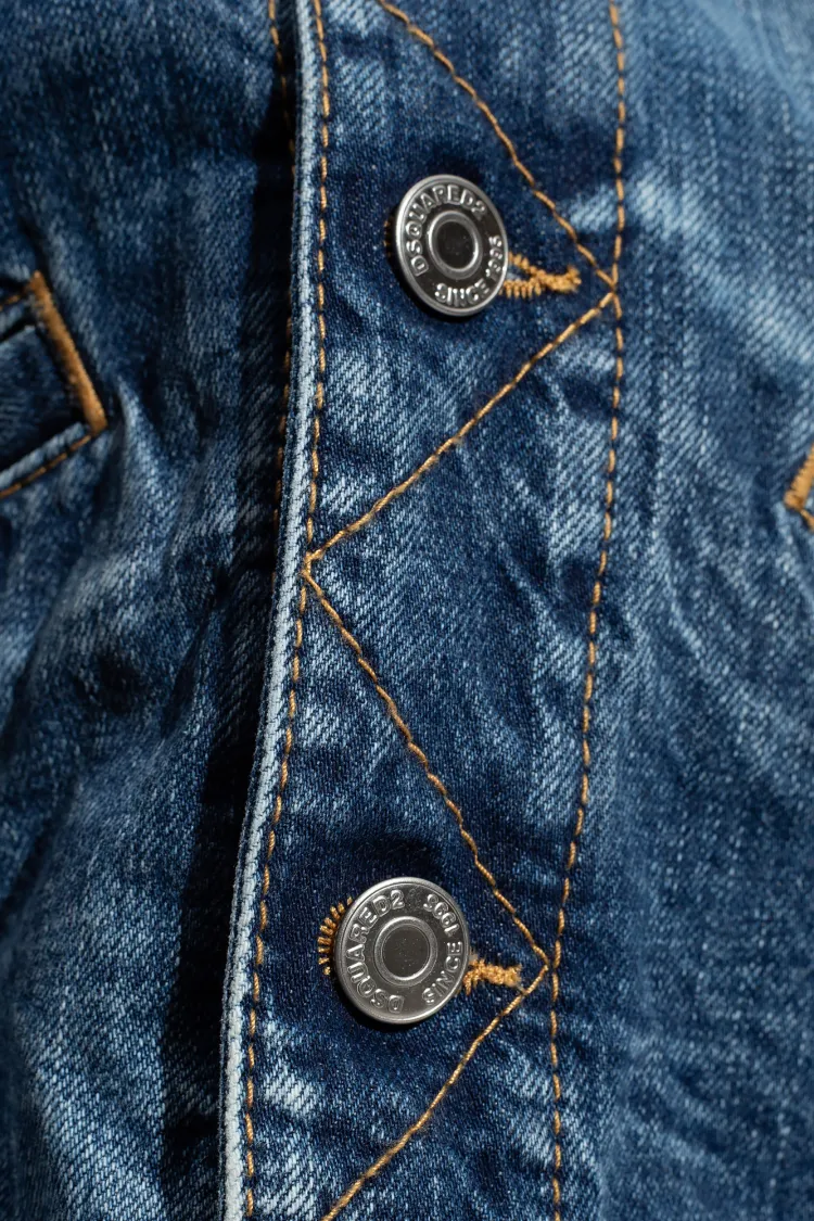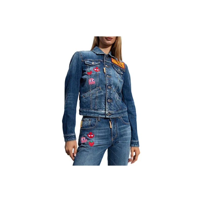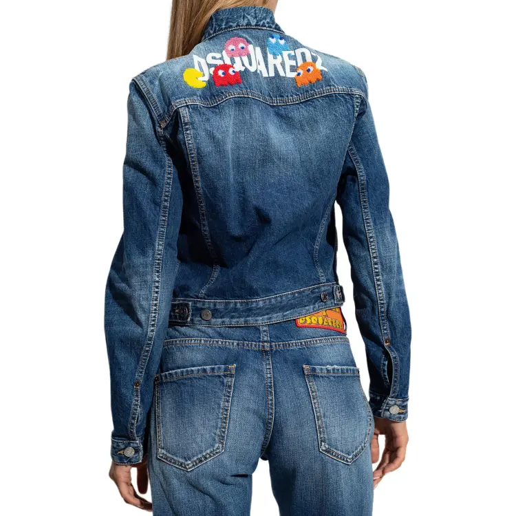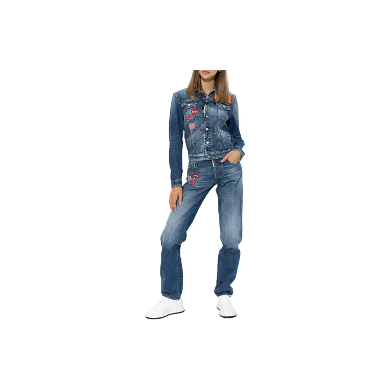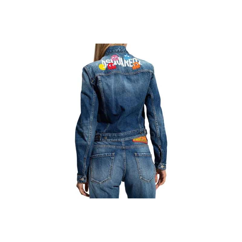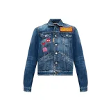 DSQUARED 2 PAC MAN Средний Wash Boyfriend Джинсы Куртка Куртки Пальто Женские Синий