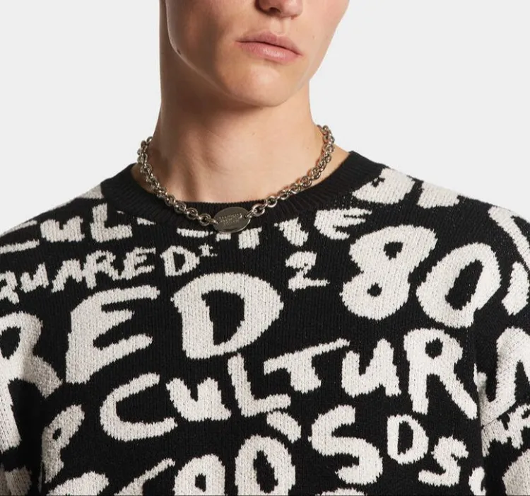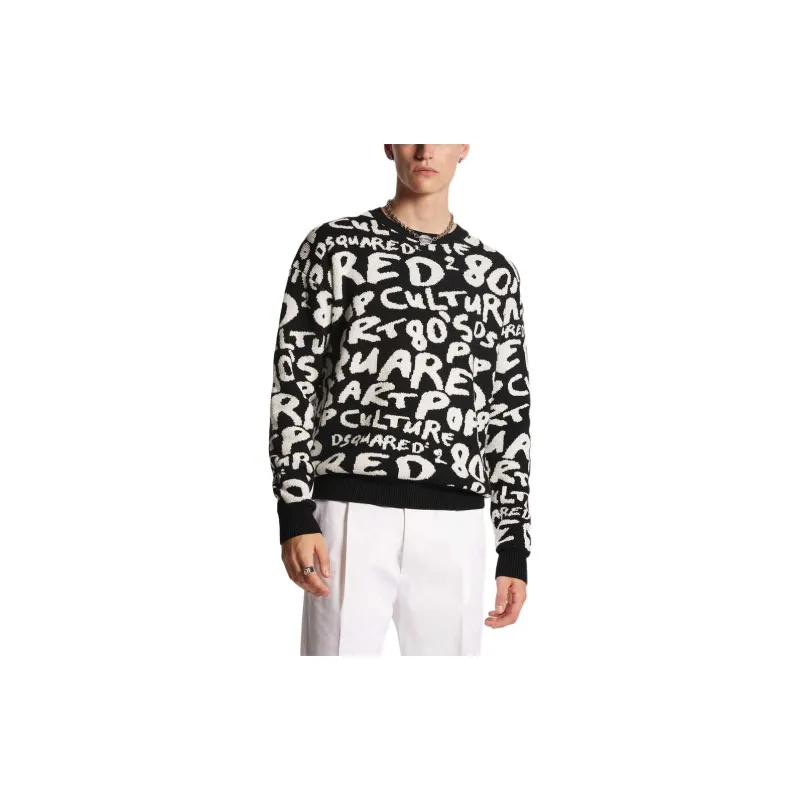 DSQUARED 2 POP 80'S KNIT Crewneck Пуловер Свитер Мужской Черный