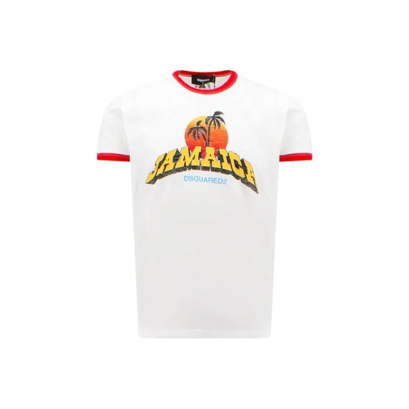 DSQUARED 2 Белый Красный Мужская T-Рубашка