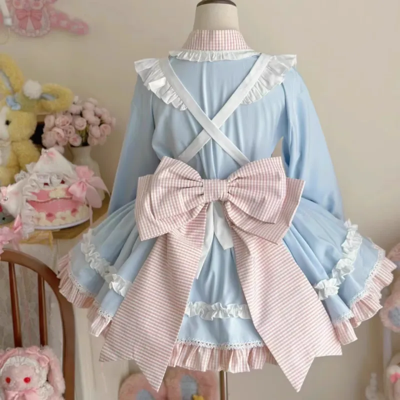 DTLUI Синий Топ+юбка+фартук Женские Платья Lolita