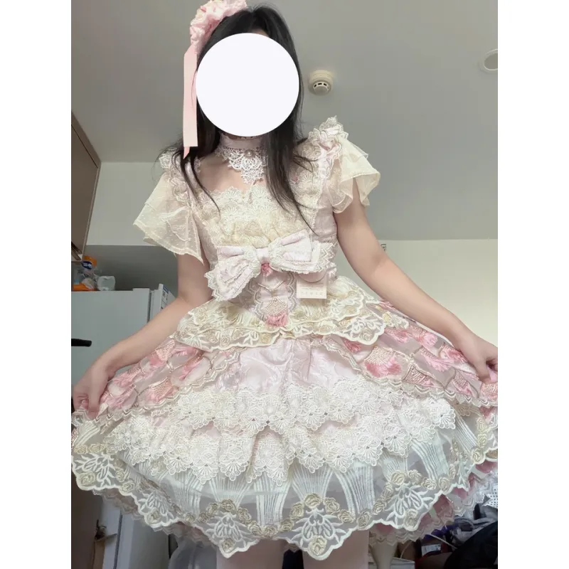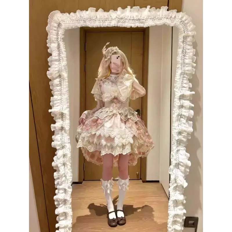 DTLUI Розовый JSK+Цилиндр+Хвост платья+Ожерелье+Перо Ласточкин хвост Женские Платья Lolita