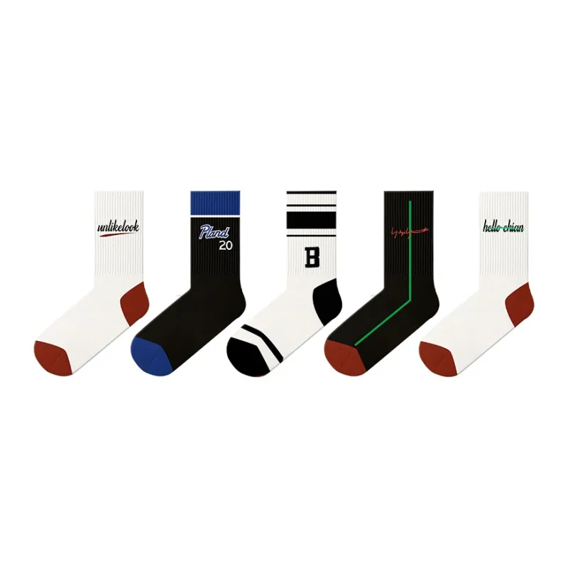 Duanmei 5 пар Американские Полосы Письмо Ассорти Унисекс MID Носки до икры