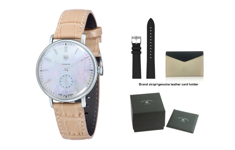 DUFA Кварцевый механизм Унисекс Часы Белый циферблат Нержавеющая сталь Корпус Часы Естественная кожа Ремешок