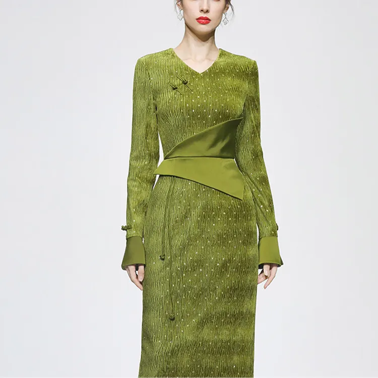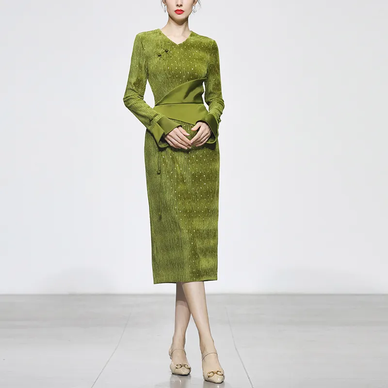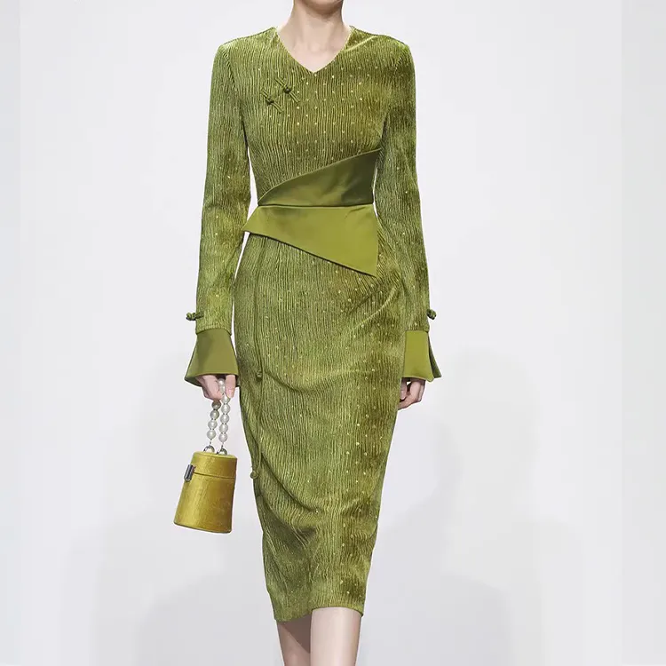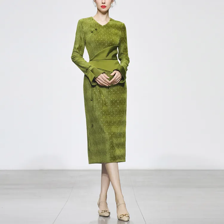 Duffy fashion Зеленое Женское Длинное Платье с Рукавами