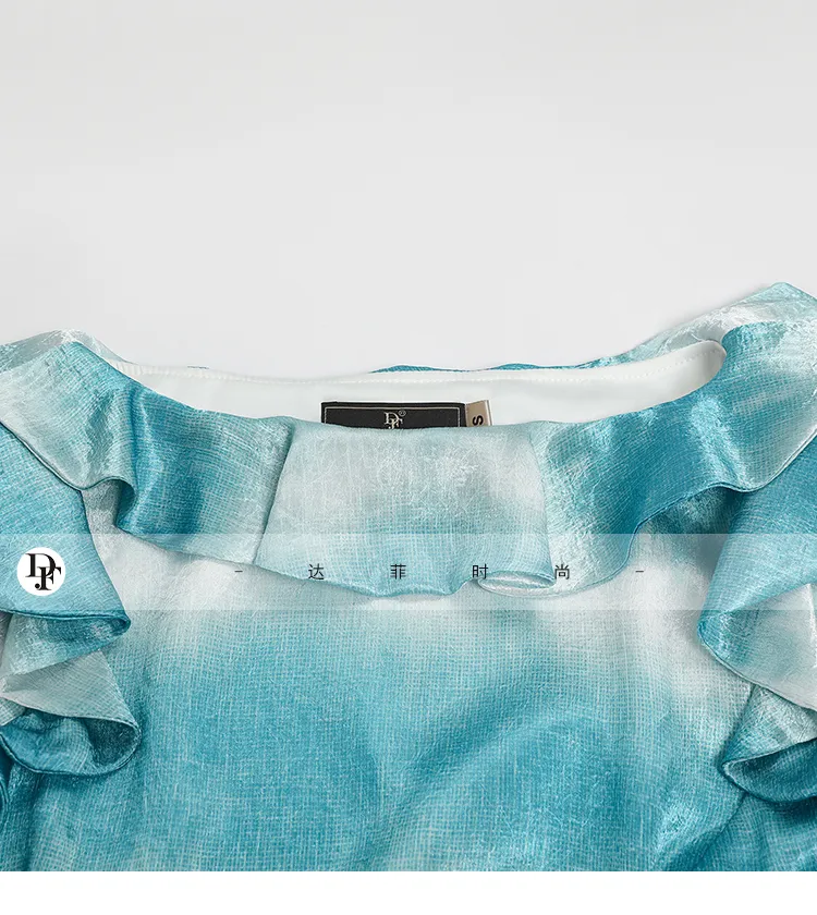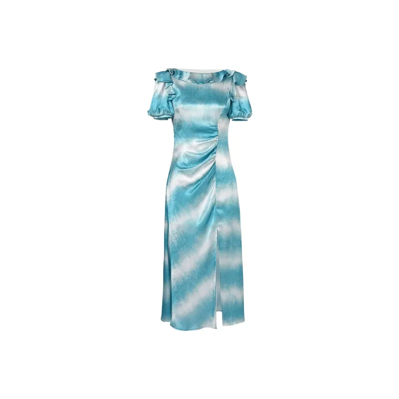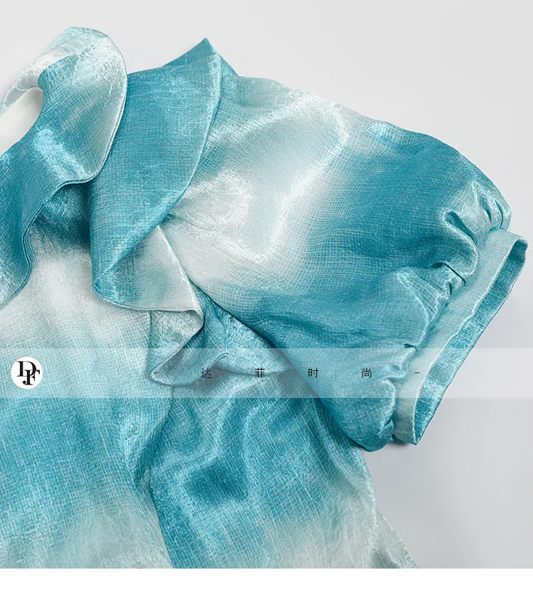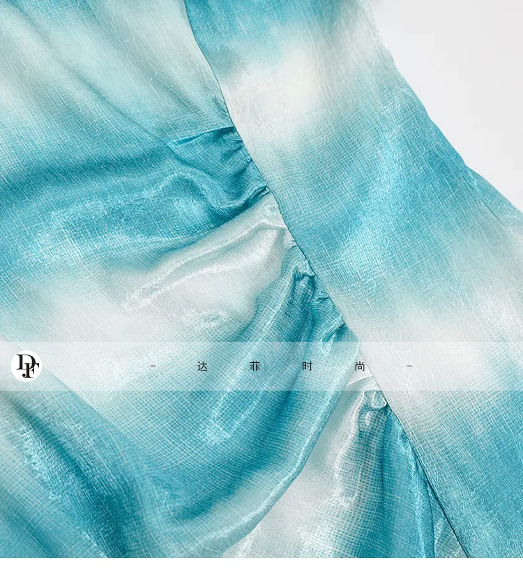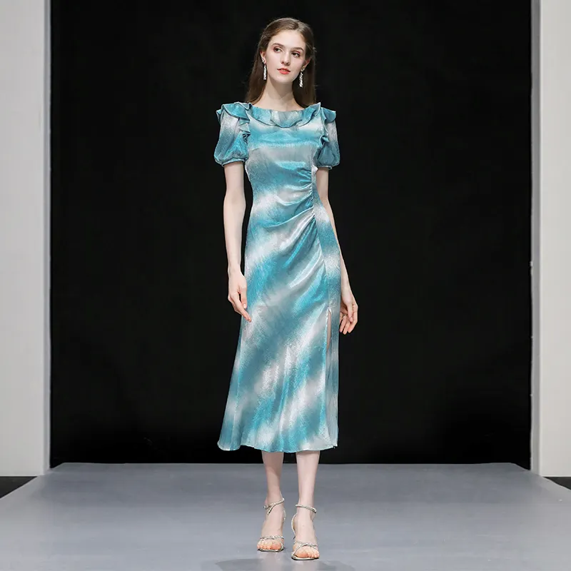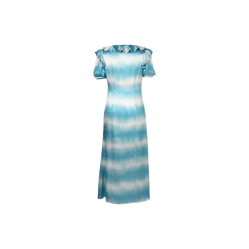 Duffy Fashion Короткий рукав Платье Женское Сине-зеленый