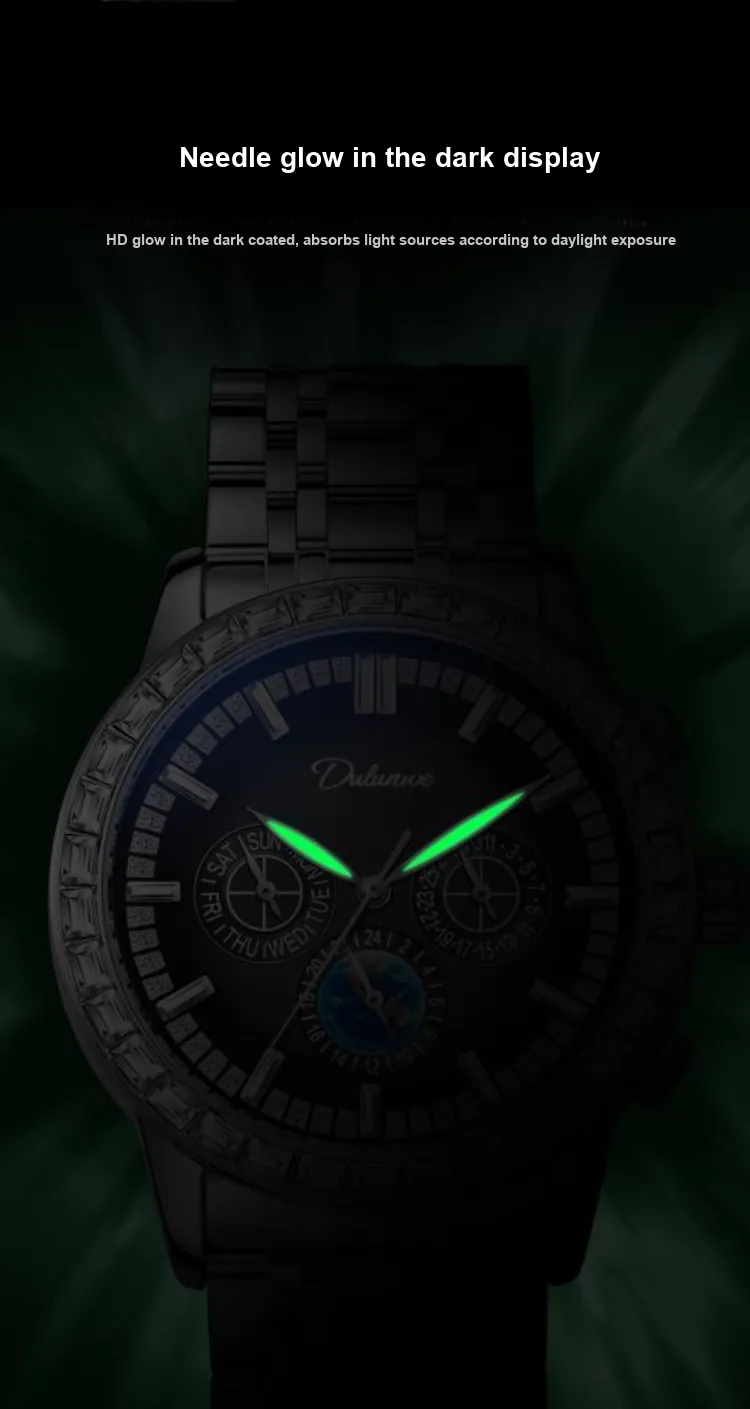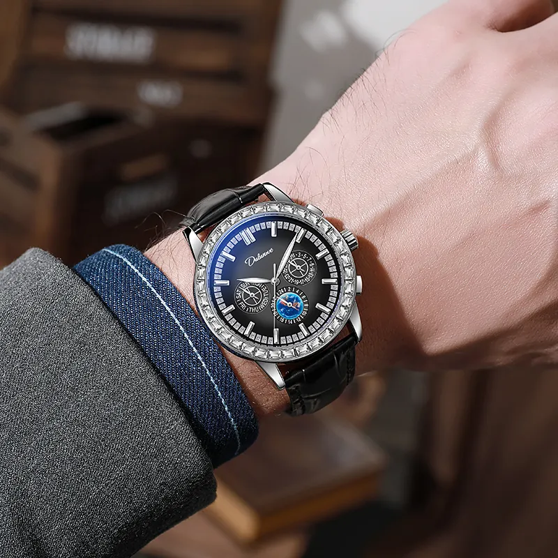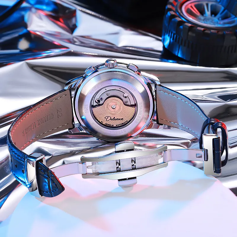 Dulunwe Автоматический Механический Механизм Естественная Кожа Ремешок Часы Мужские Черный Циферблат