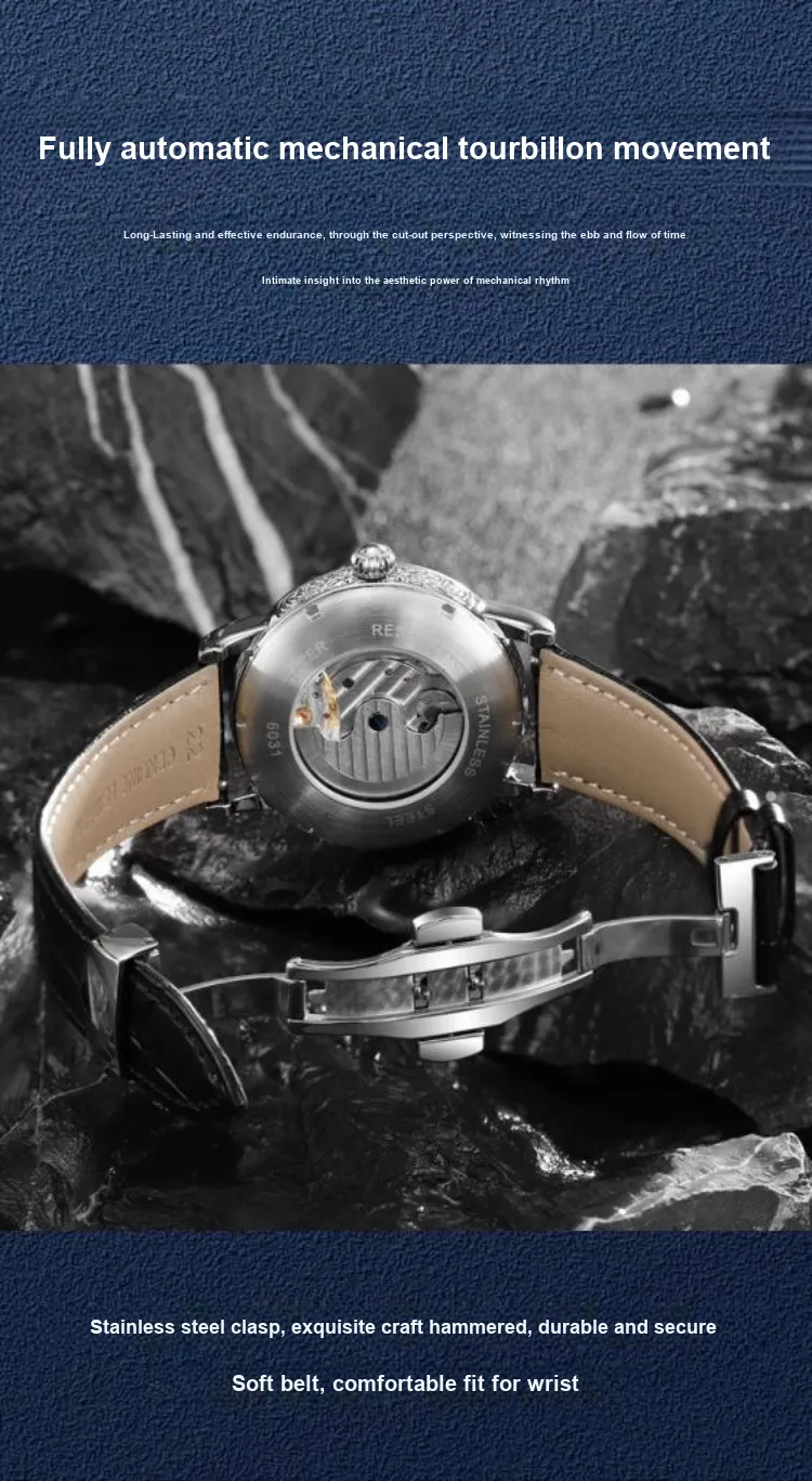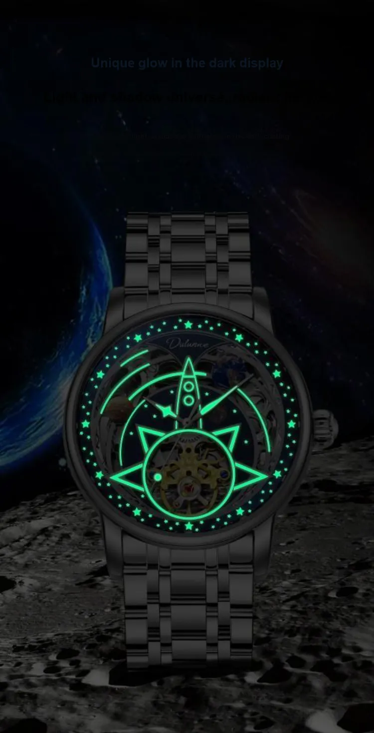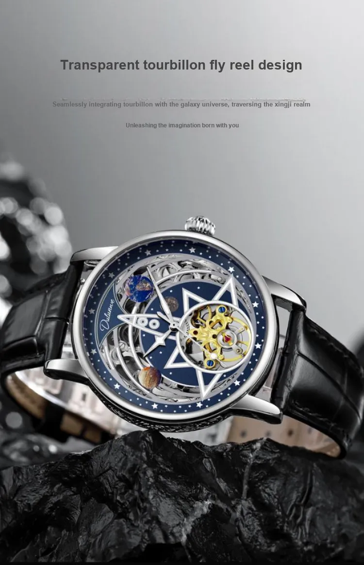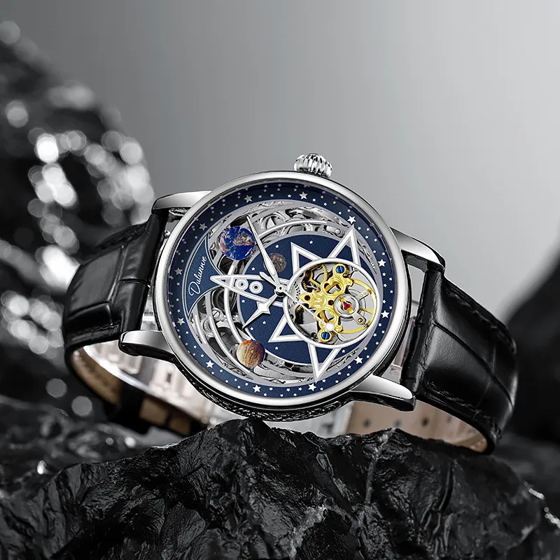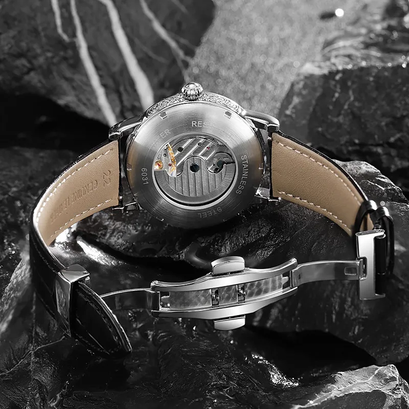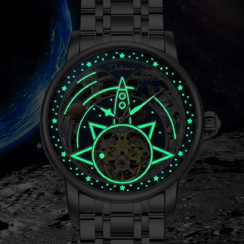 Dulunwe Автоматический механический механизм натуральная кожа ремень мужские часы циферблат с открытым механизмом
