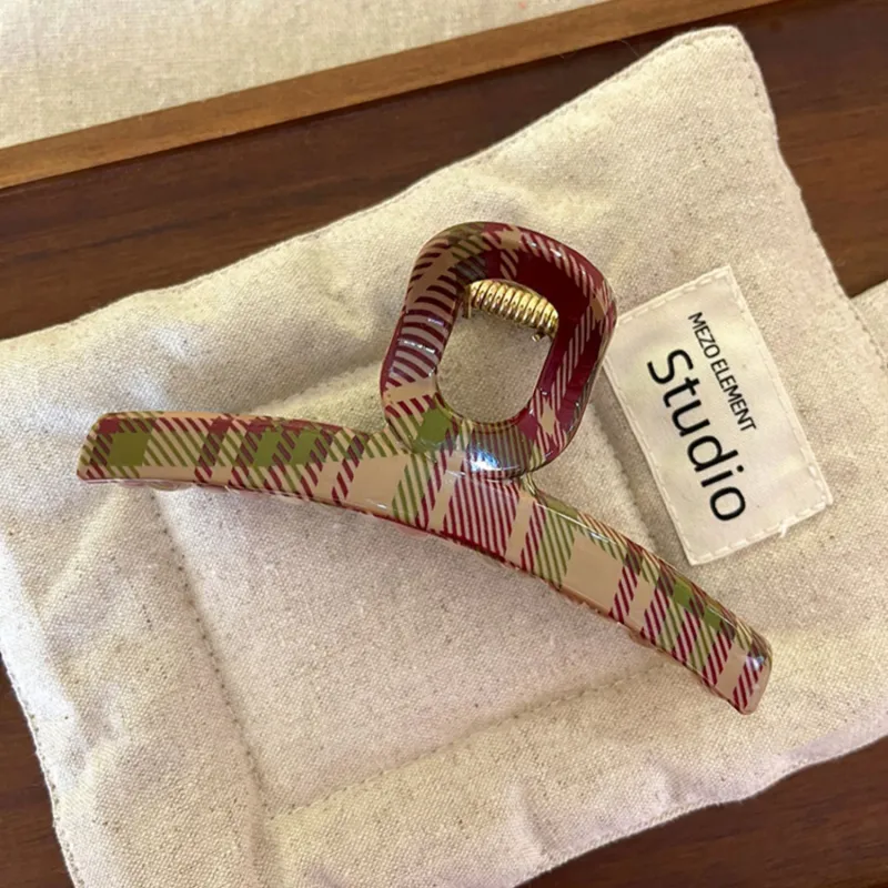 Заколка-краб светлого цвета в клетку