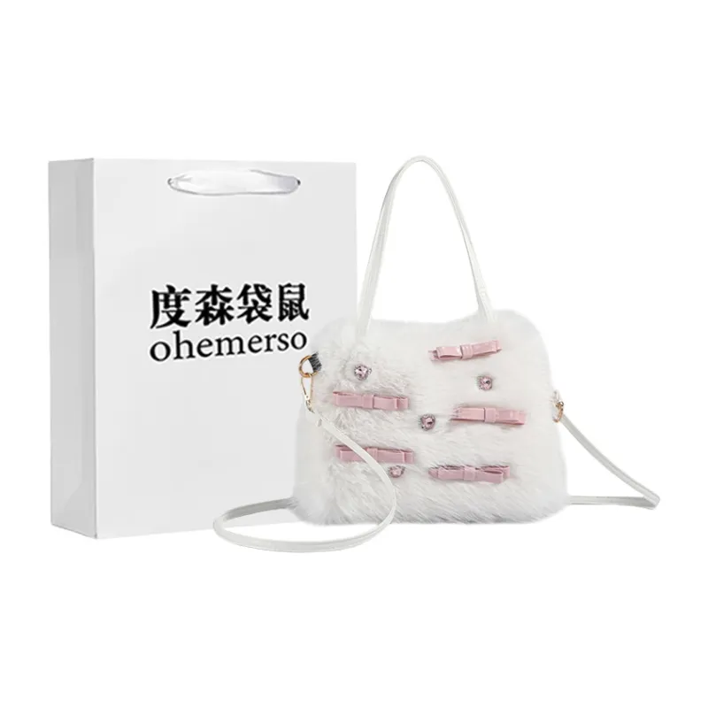 Dusen Kangaroo Плюшевый Crossbody Bag Сумка через плечо Стандартная Женская Белая Розовая Черная Хаки