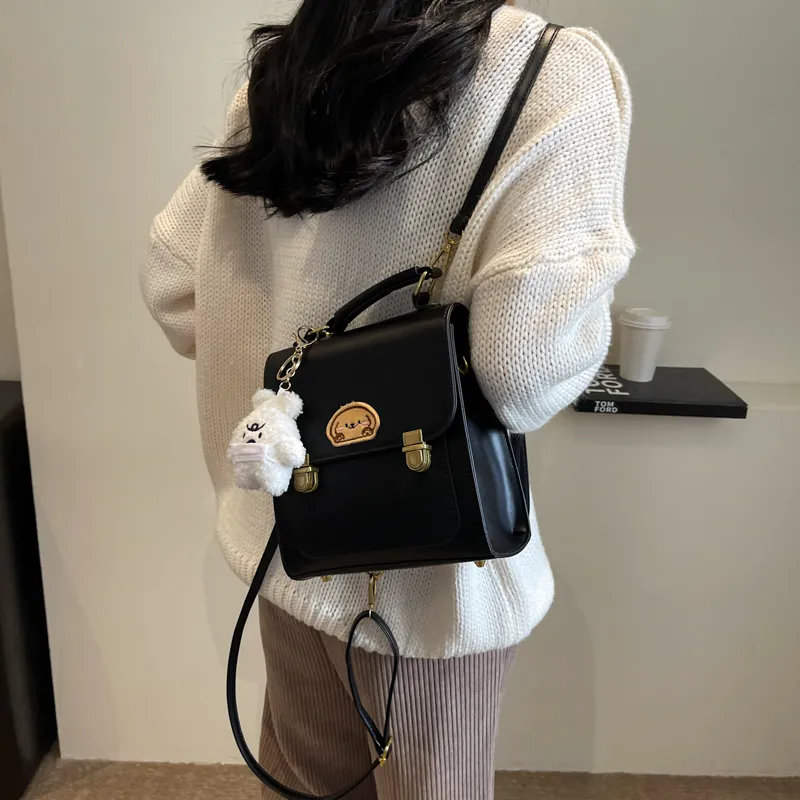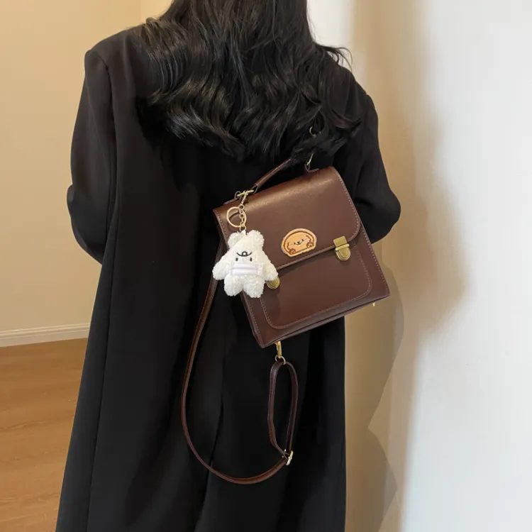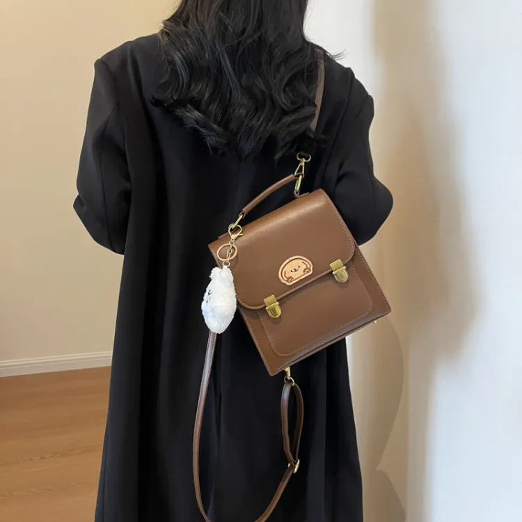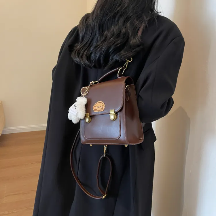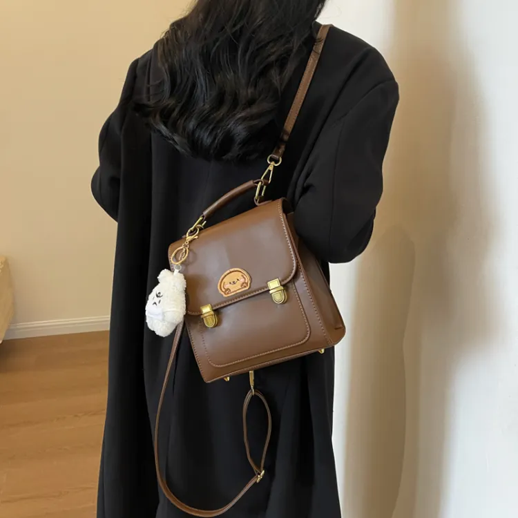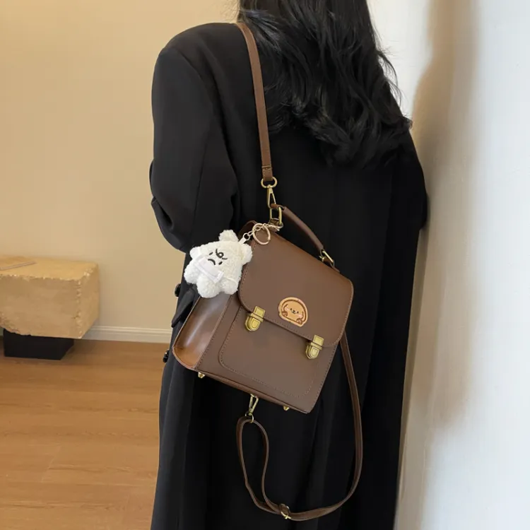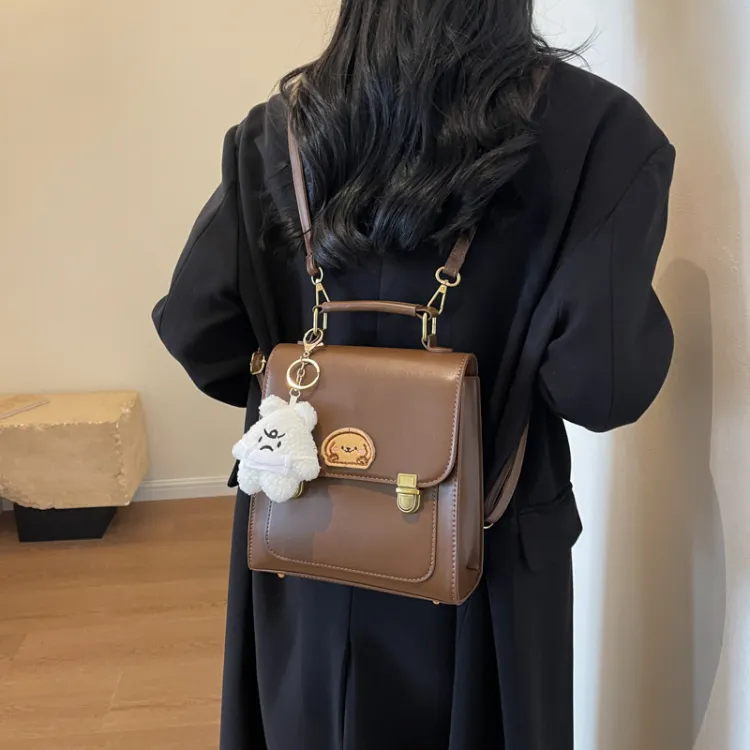 Dusen Kangaroo ПУ (полиуретан) Рюкзак Стандартный Женский Кофейный Коричневый Черный