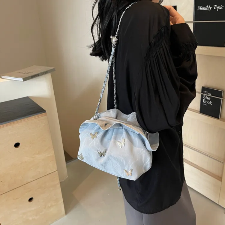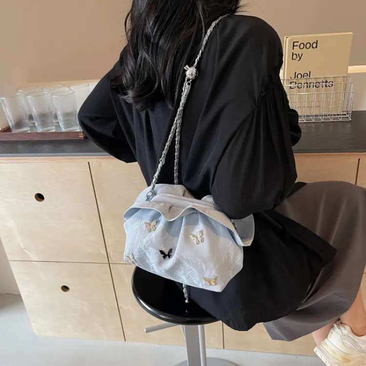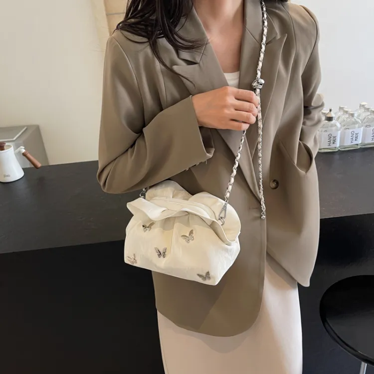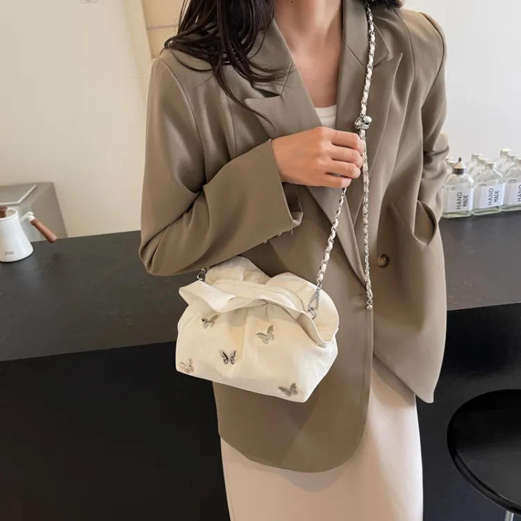 Dusen Kangaroo ПУ (полиуретан) Сумка через плечо Стандартная Женская Экрю Серебряный Синий Черный
