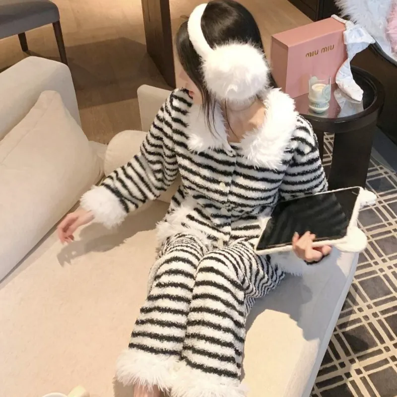DUSHILIREN Черно-белые полосы Комплекты одежды Женские Пижамные комплекты