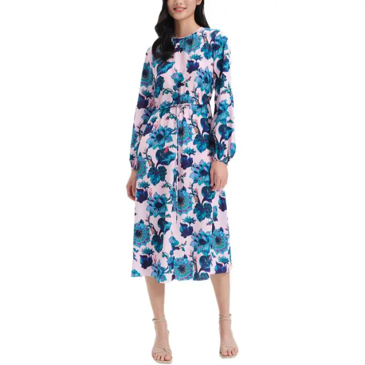 DVF Diane Von Furstenberg Длинное платье с длинными рукавами женское розовое синее