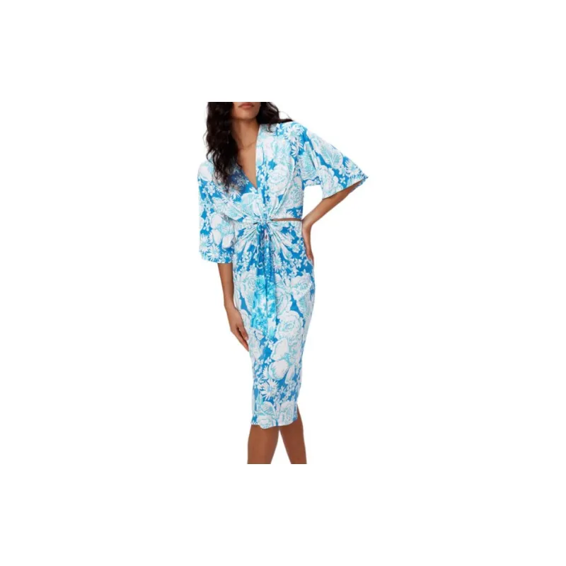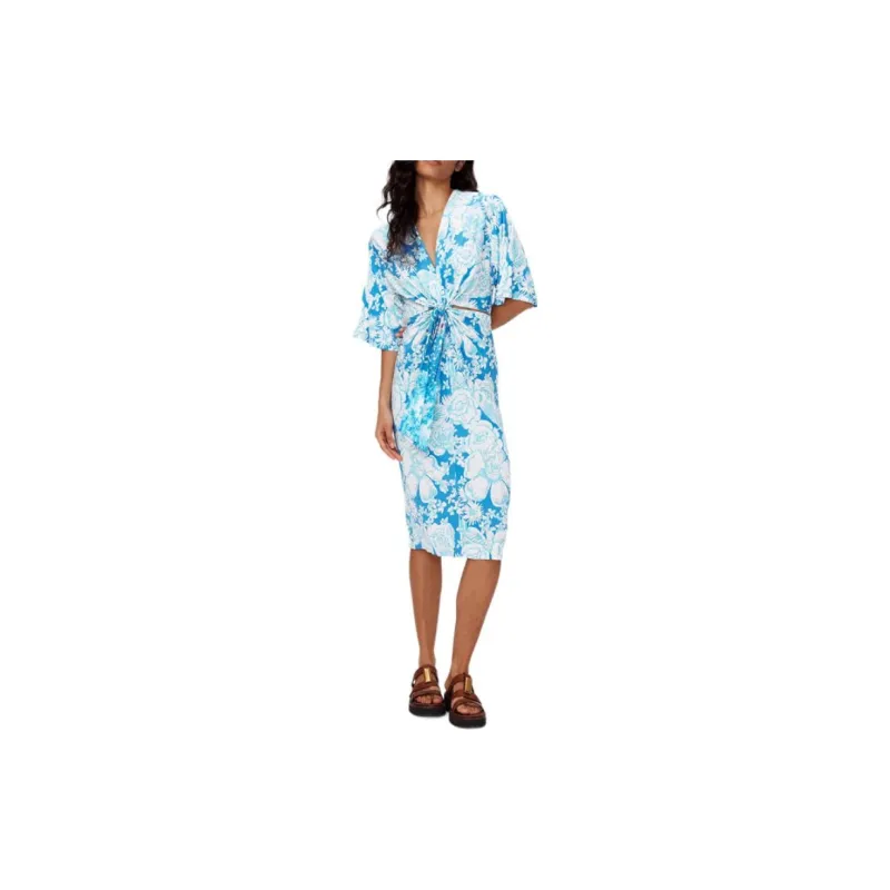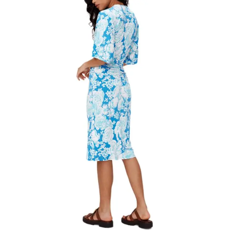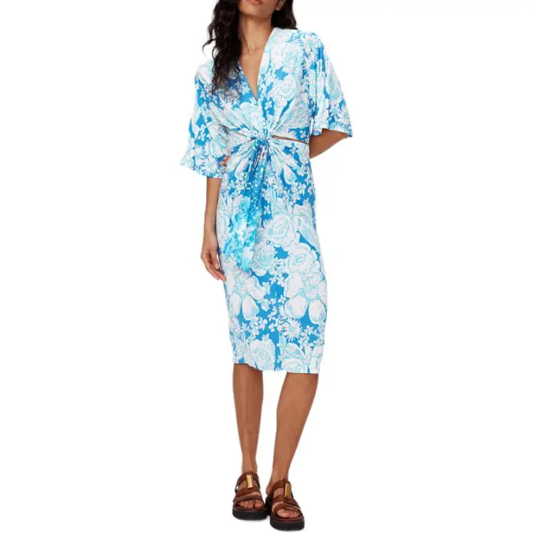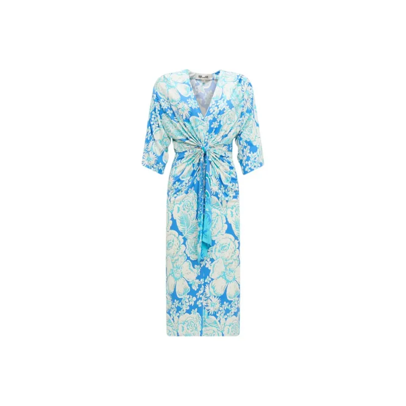 DVF Diane Von Furstenberg FW24 Длинное платье с длинными рукавами женское синее