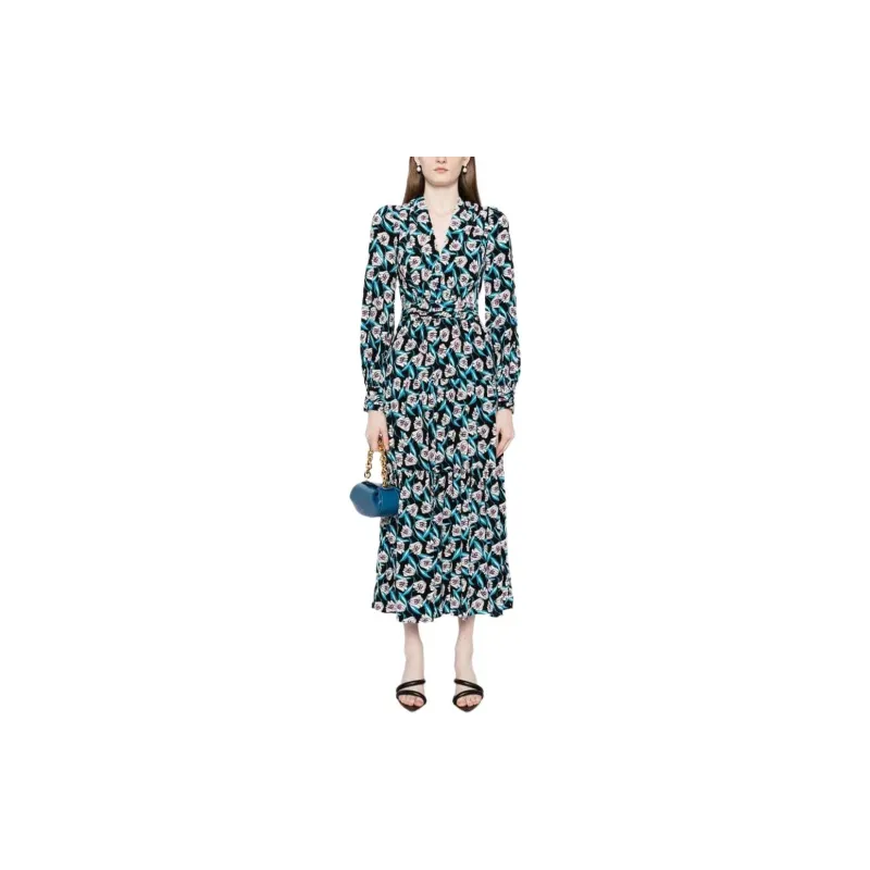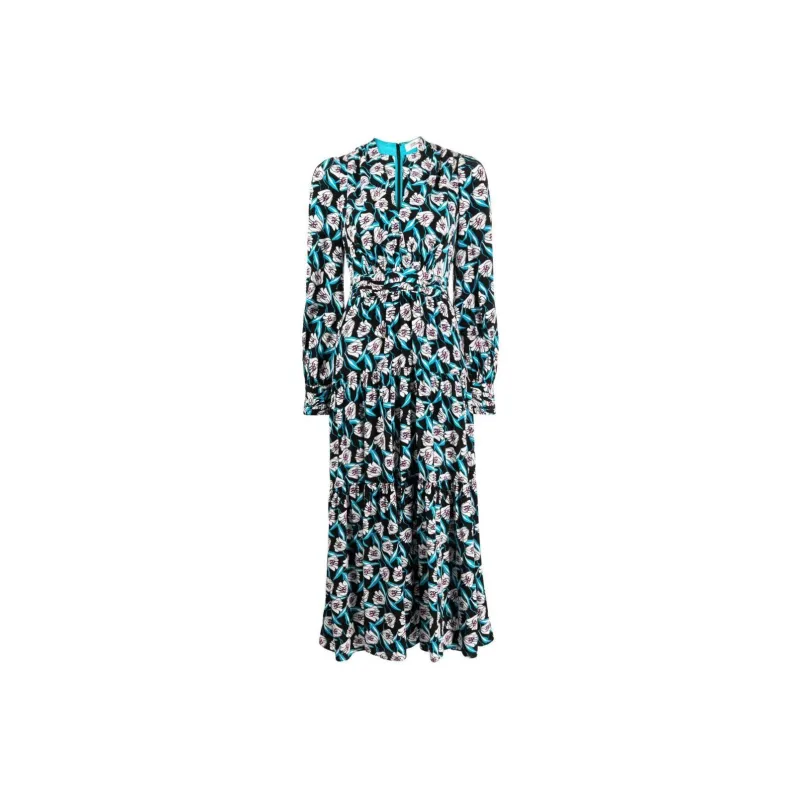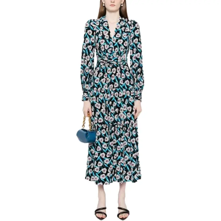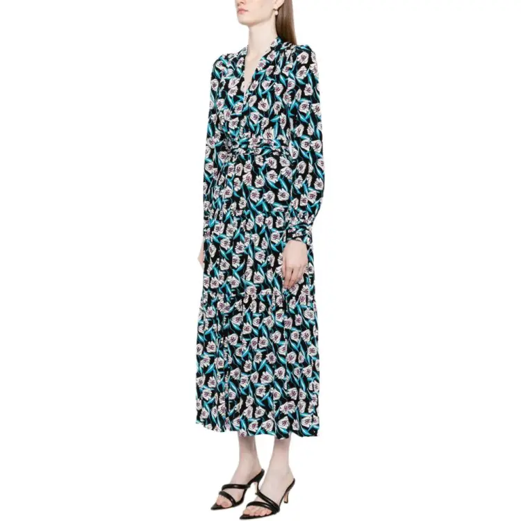 DVF Diane Von Furstenberg SS24 Длинное платье с длинными рукавами женское многоцветное