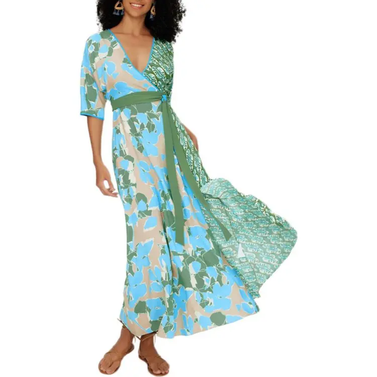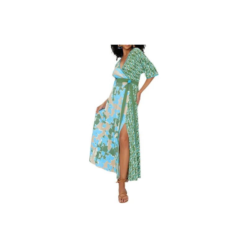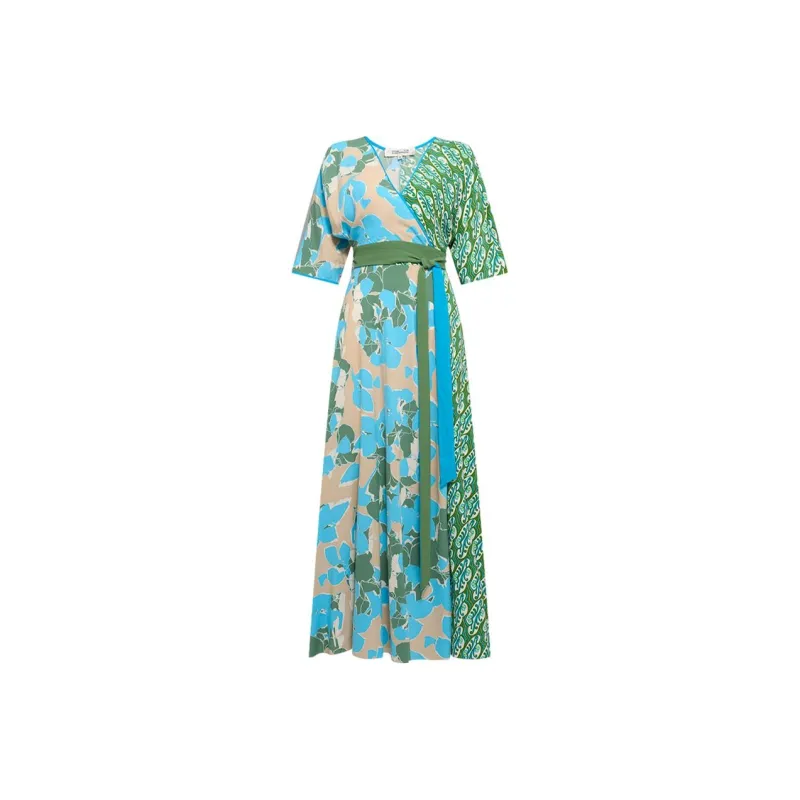 DVF Diane Von Furstenberg SS24 Длинное платье с длинными рукавами женское изумрудно-зеленый