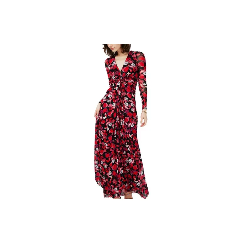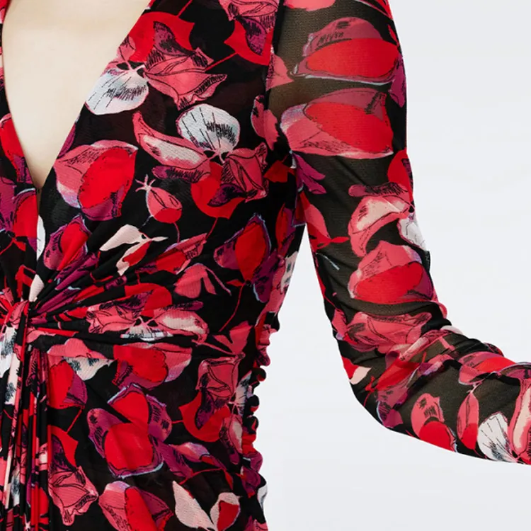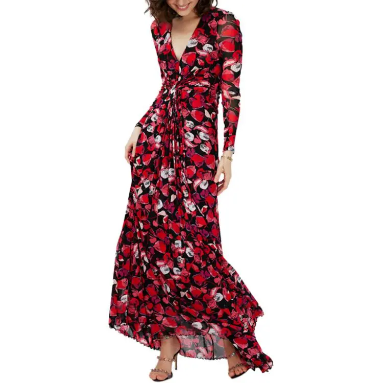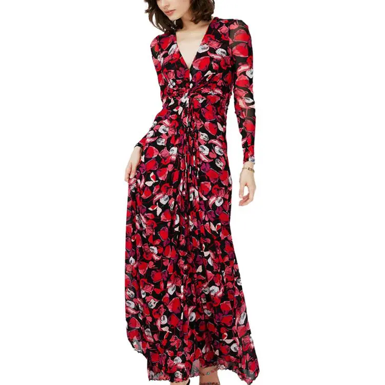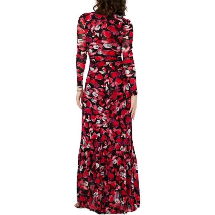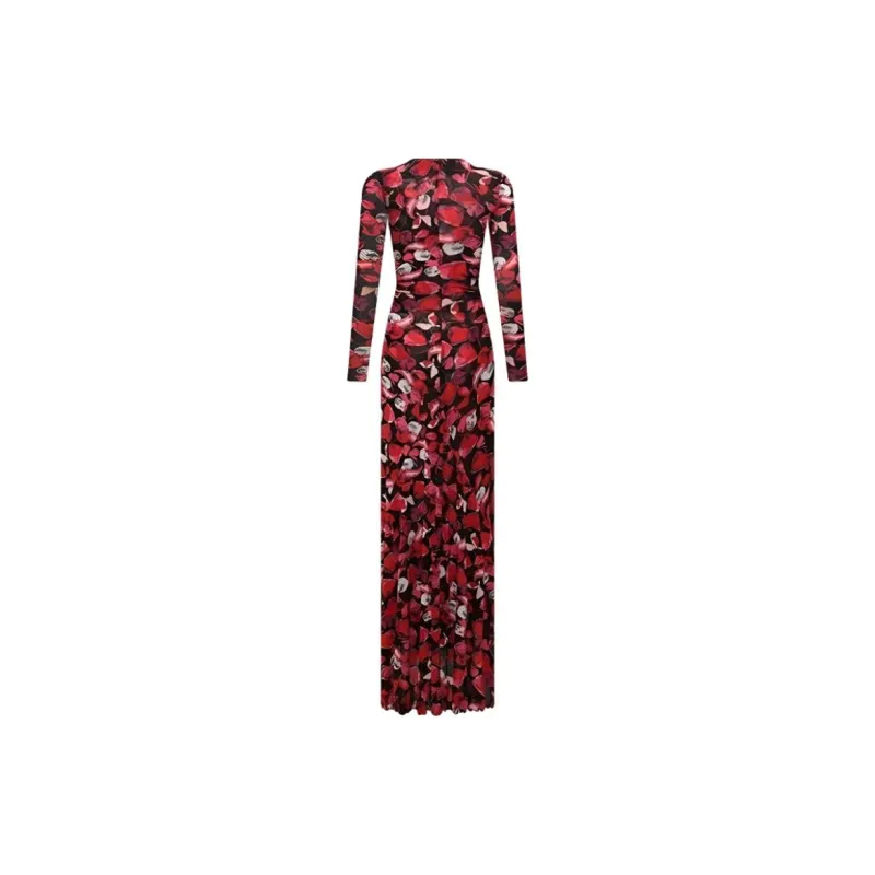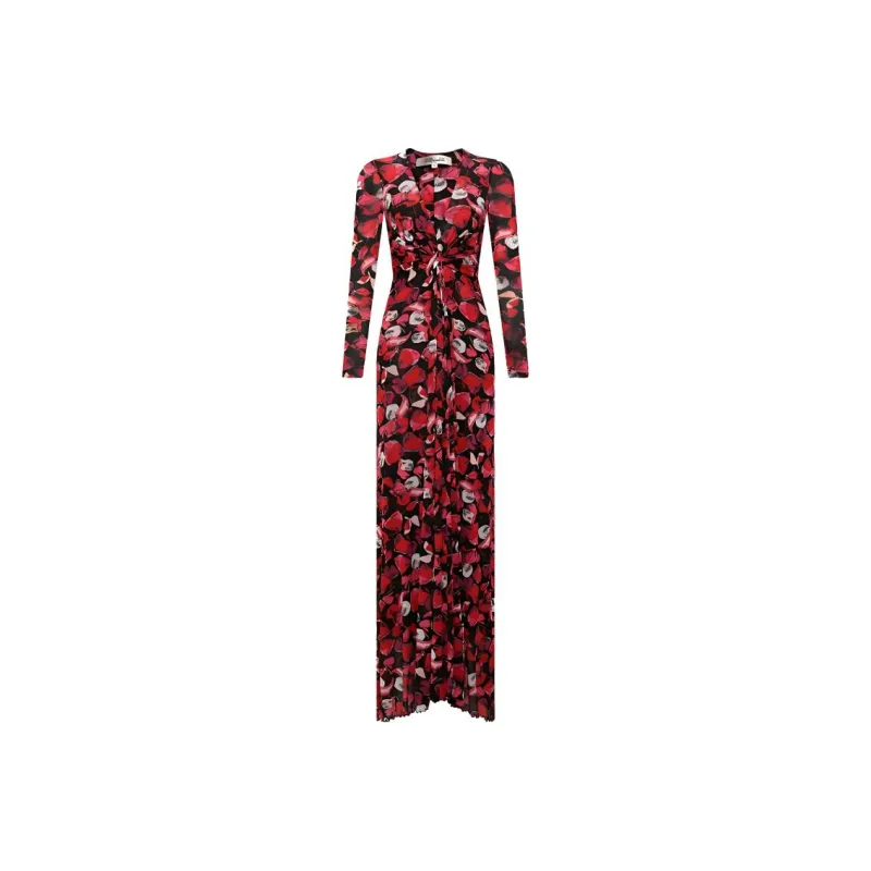 DVF Diane Von Furstenberg SS24 Длинное платье с длинными рукавами женское ягодно-красного цвета серия FLOATING с лепестком