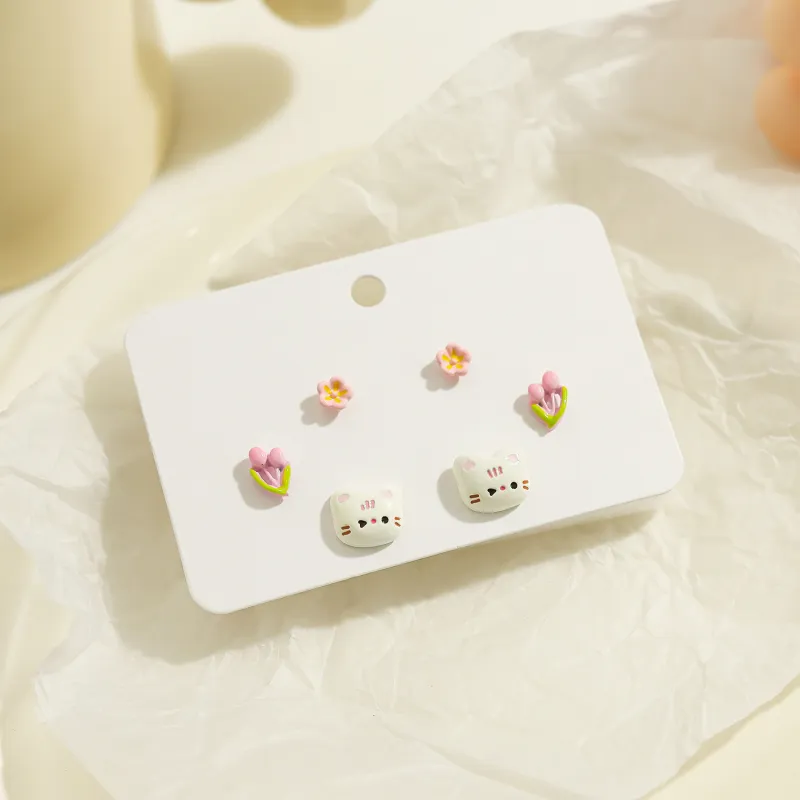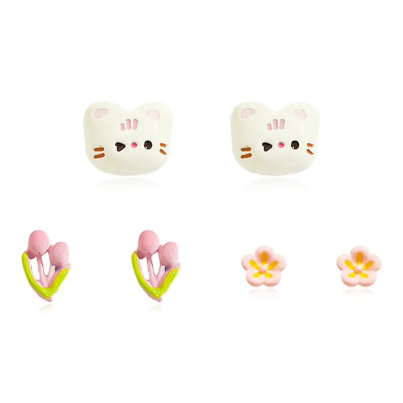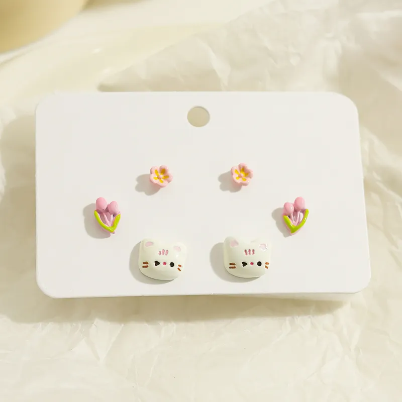 Стиль:Маленький цветок, котенок, трехкомпонентный комплект, серьги