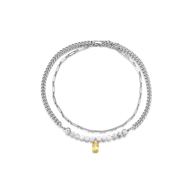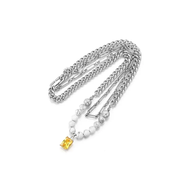 DWCP Титановая сталь Циркон Белая бирюза Взрывной цветочный дизайн Crystal Necklaces Унисекс