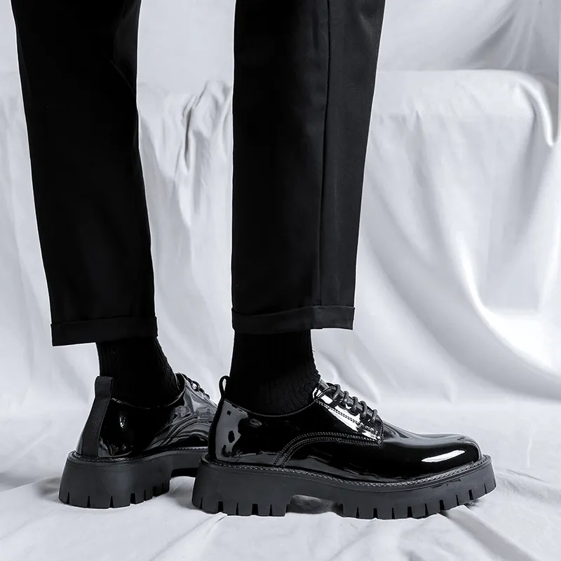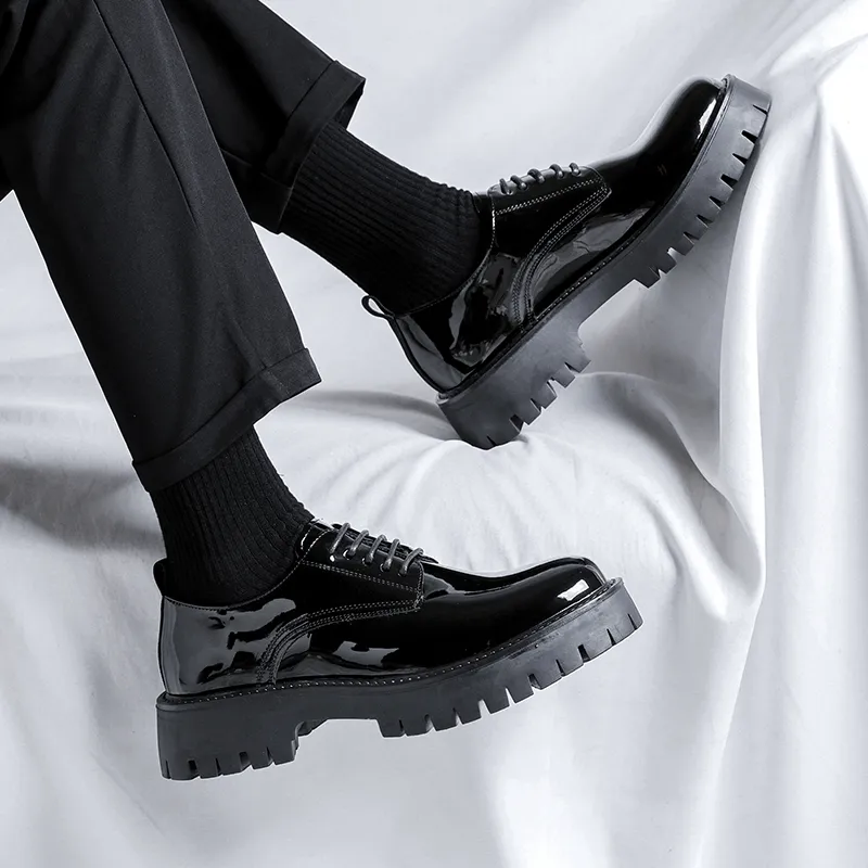 DY Повседневные кожаные туфли с низким верхом черные лакированная кожа мужской