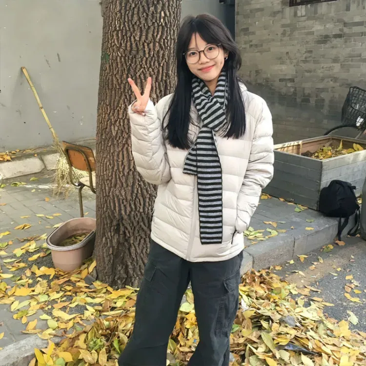 Светло-серый хлопковый пуховик