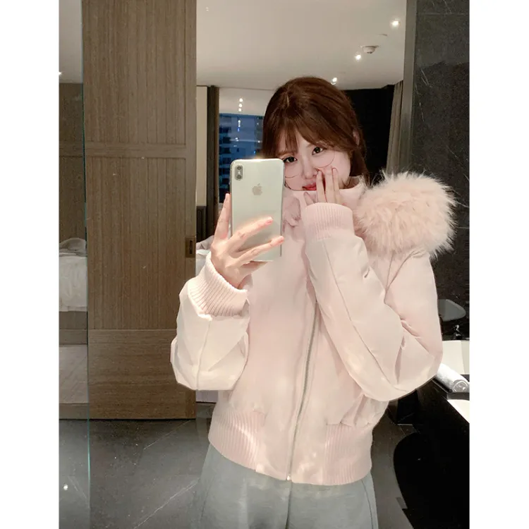 Розовый хлопковый пуховик