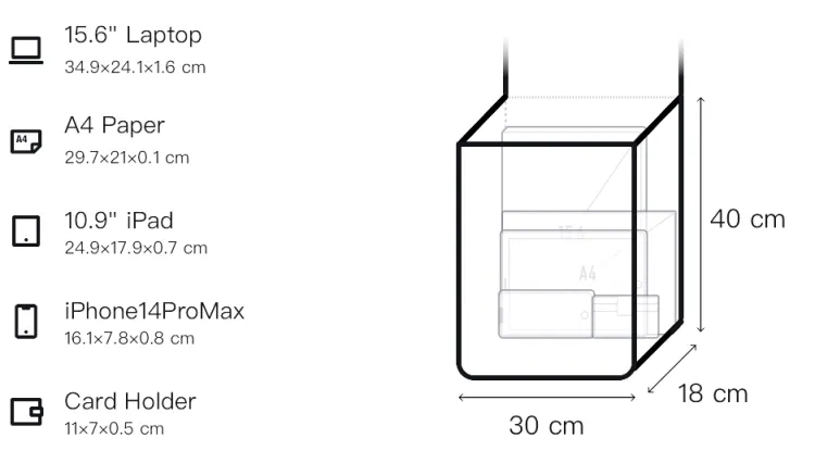 Длина: 30 см, ширина: 18 см, высота: 40 см