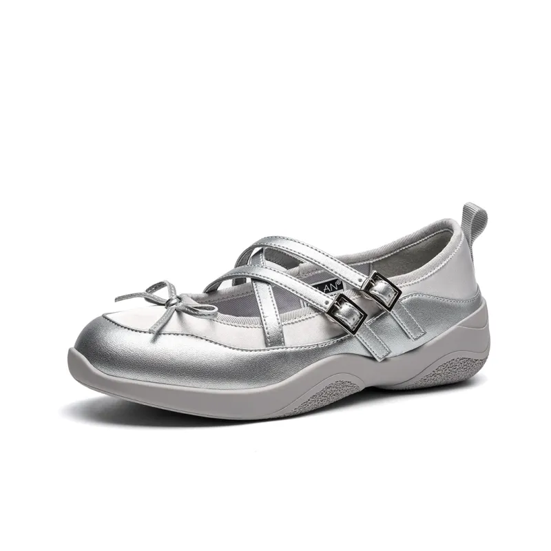 EBLAN Платформа Туфли Мэри Джейн Женские Серебряные