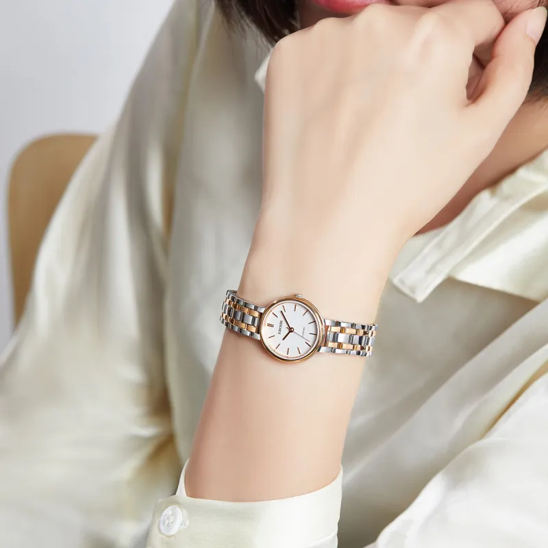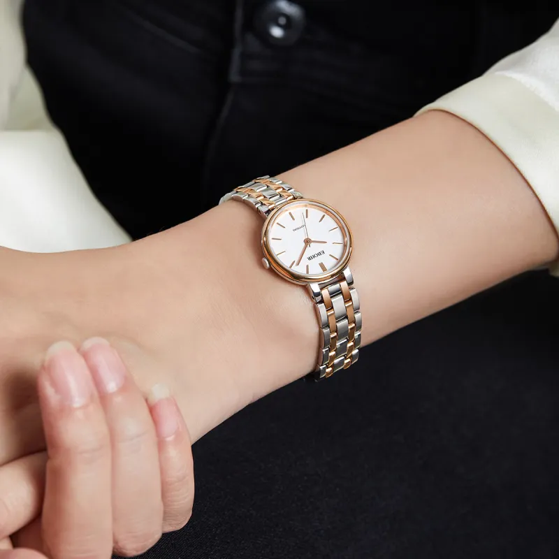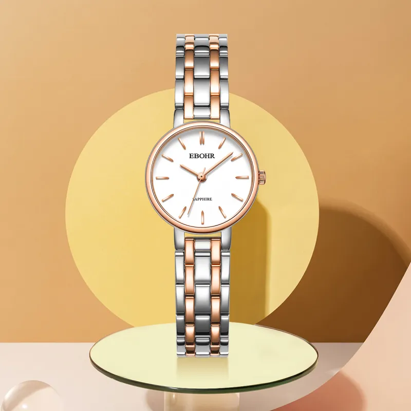 EBOHR Cana Collection Кварцевый механизм ремешок из нержавеющей стали женские часы белый циферблат