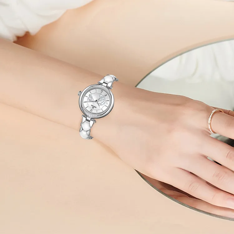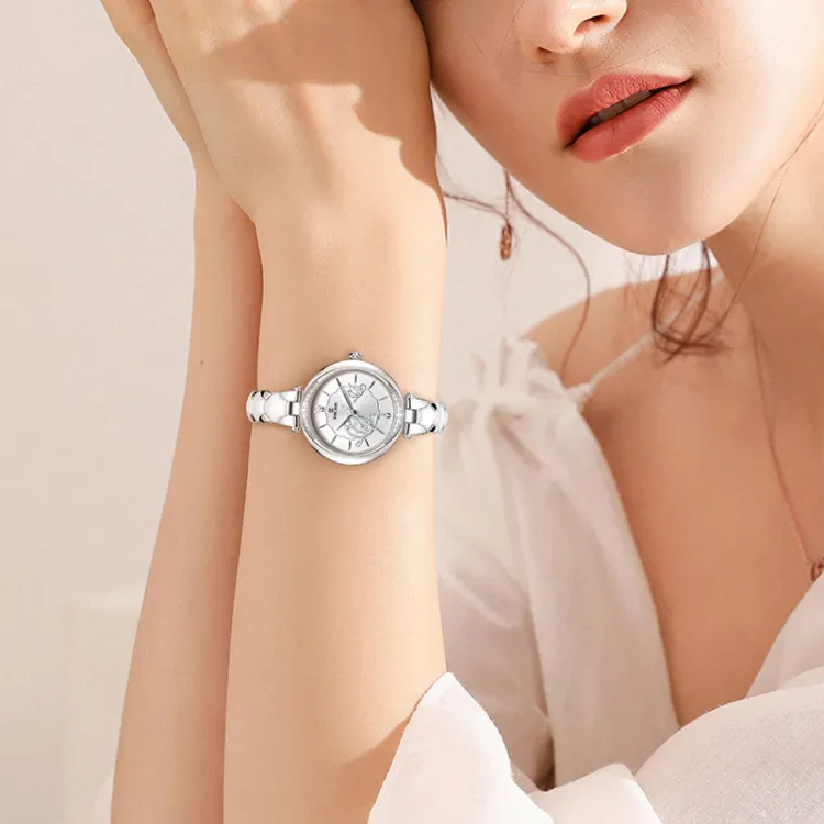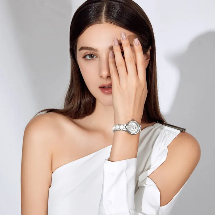 EBOHR Revenge Collection Кварцевый механизм Керамика Ремешок Часы Женские Белый циферблат