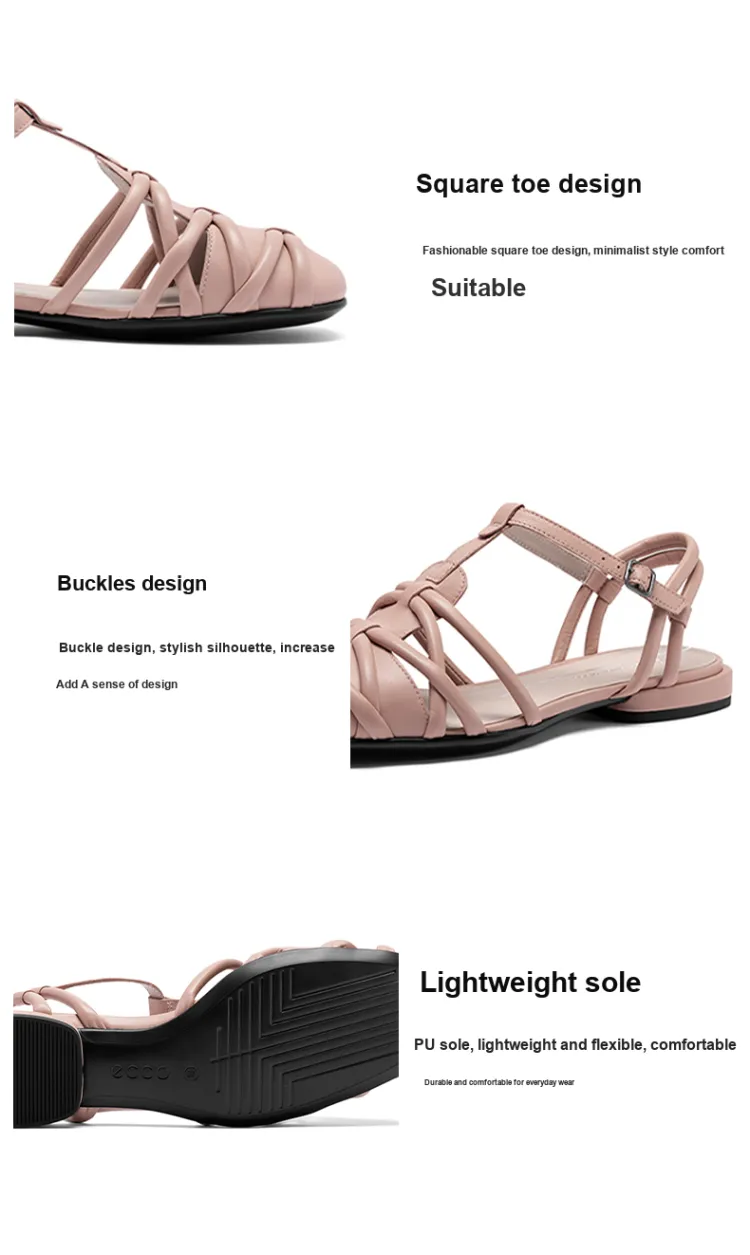 Ecco Annie Series Грубый каблук Мода Сандалии Женские Тоскана Розовый