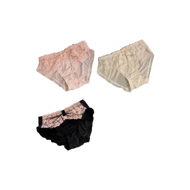 ECONICE Сушеная роза + Невинно-соблазнительный Кремово-абрикосовый + Возлюбленная Черно-розовый [3 шт. More Экономичный] Женские Трусики-бикини